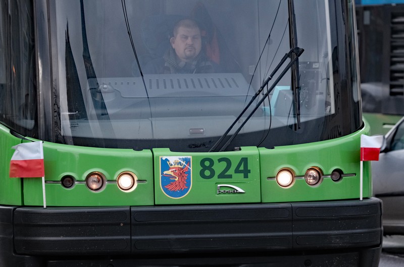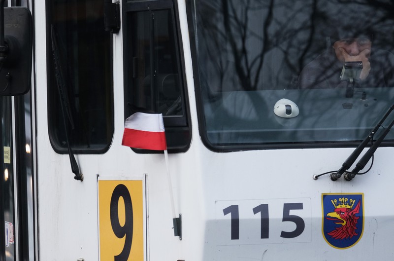 W Szczecinie autobusy i tramwaje na znak żałoby mają biało-czerwone chorągwie, a na budynku magistratu opuszczono flagi do połowy masztu.