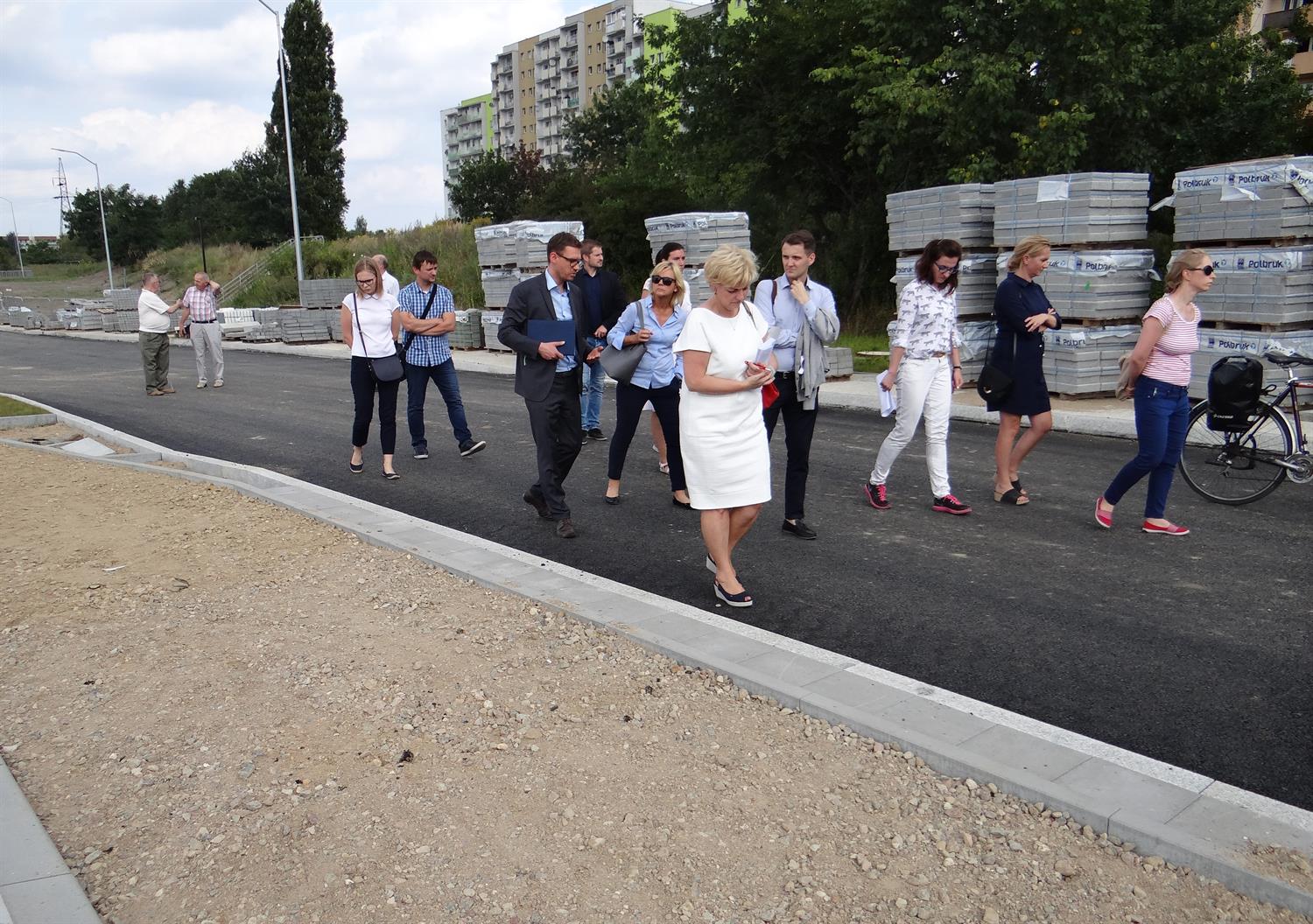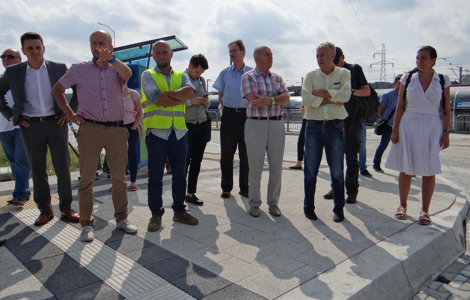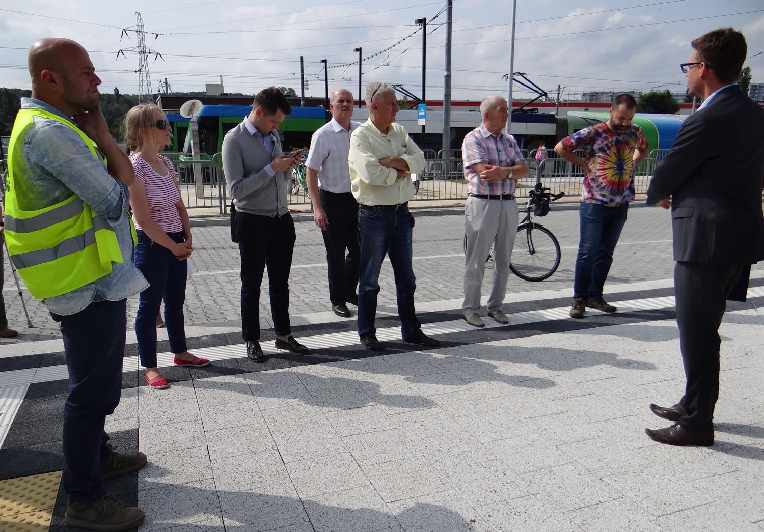 Na zdjęciu: Pętla Turkusowa. Radni i urzędnicy podczas czwartkowej wizji lokalnej na placu budowy.