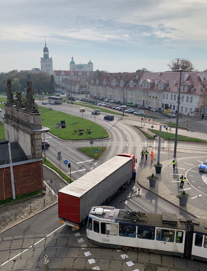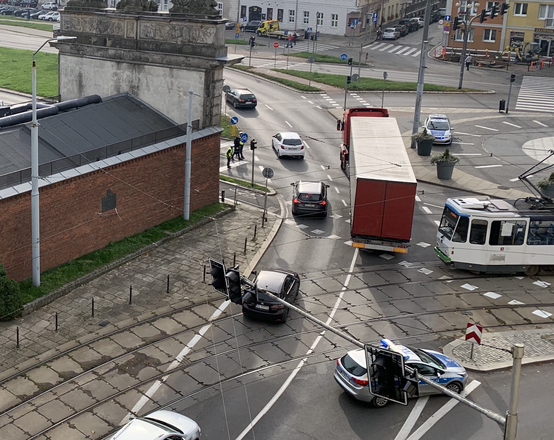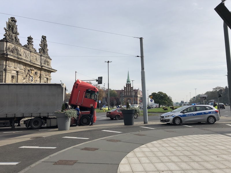 Zepsuta ciężarówka zablokowała w poniedziałek przed godz. 11 przejazd na placu Hołdu Pruskiego w Szczecinie.