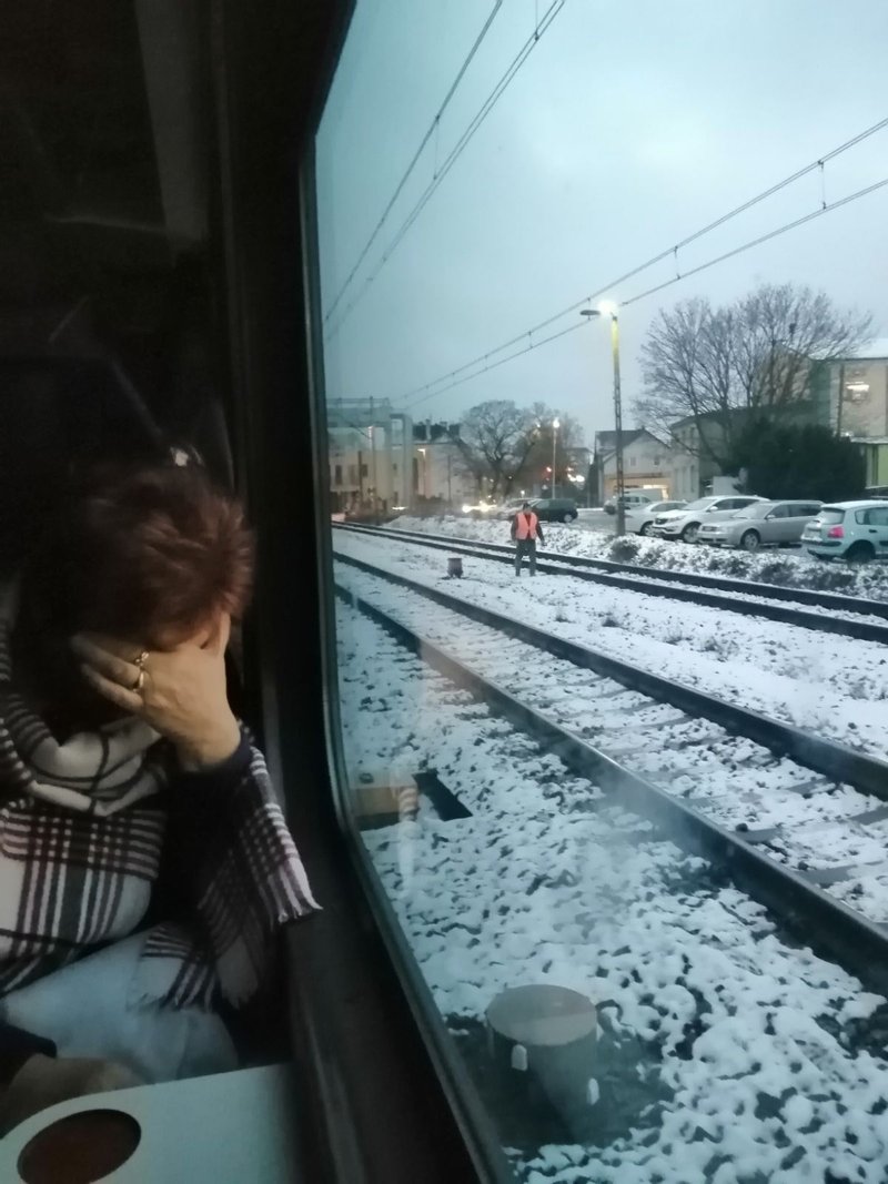 Pasażerowie przez ok. 1,5 godziny czekali w pociągu tuż za stacją w Goleniowie. Fot. Czytelniczka