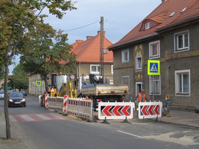 Na zdj.: Awaria sieci kanalizacyjnej spowodowała, że na ul. Kościuszki w Stargardzie wprowadzono ruch wahadłowy.