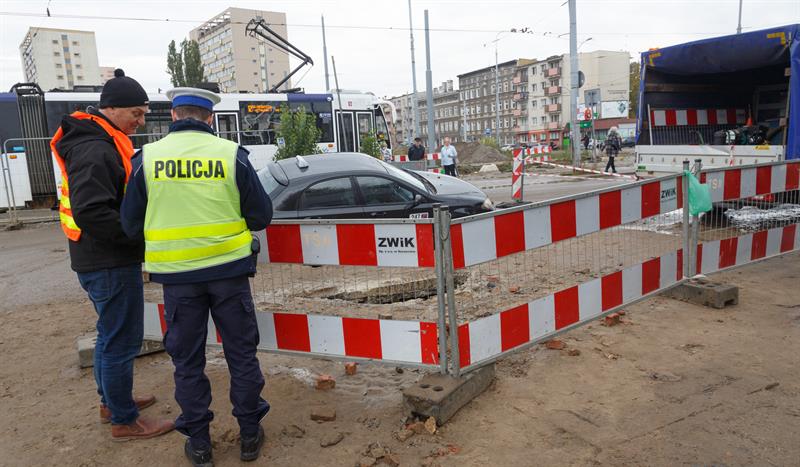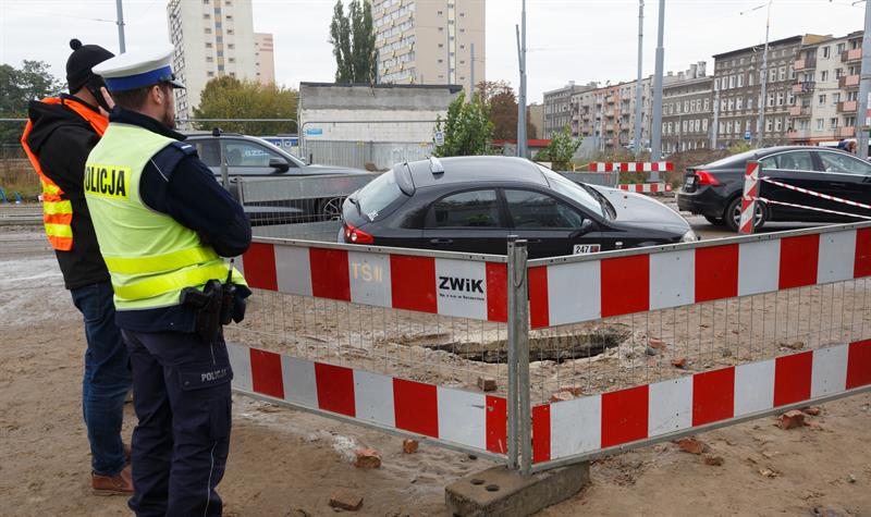 Ruch w ul. Smolańskiej jest już wznowiony, jednak odbywa się ze sporymi ograniczeniami. W zapadlisku znajduje się wciąż osobowy chevrolet, pod którym zapadła się jezdnia. Trwają przygotowania do usunięcia auta. Miejsce awarii zabezpieczają policjanci i pracownicy ZWiK.