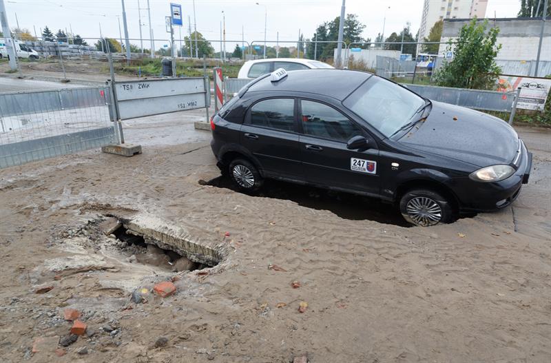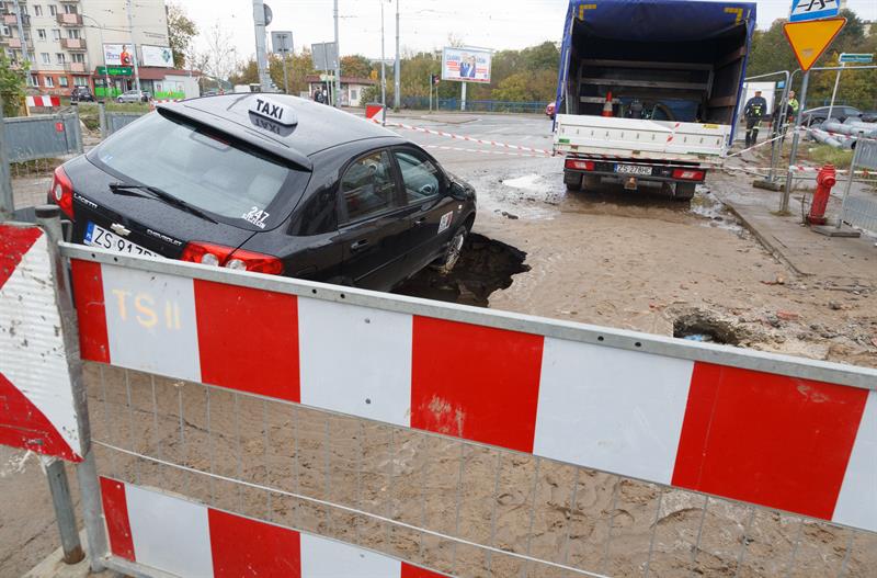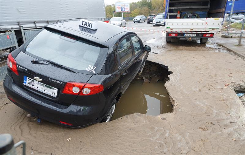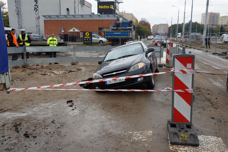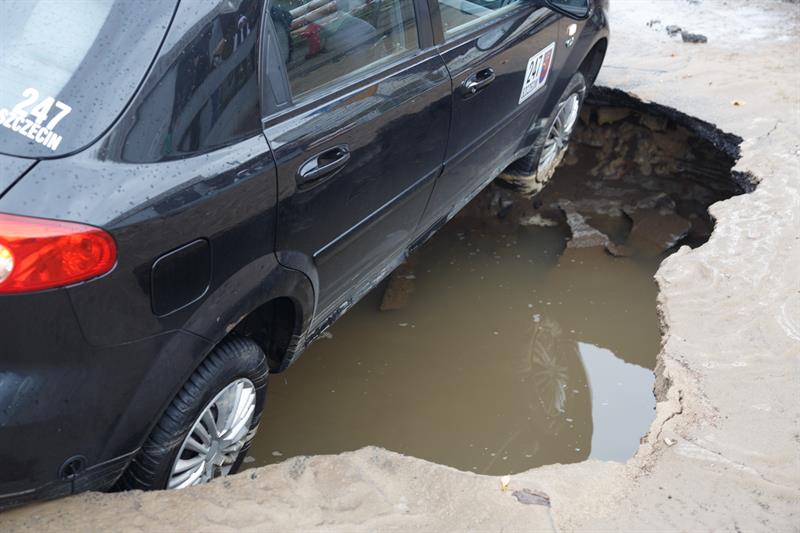 Samochód, pod którym we wtorek rano zapadła się jezdnia ul. Smolańskiej na szczecińskich Pomorzanach, z wyrwy został wyciągnięty ok. godz. 13. Po oględzinach okazało się, że uszkodzenia pojazdu są niewielkie i w dalszą drogę odjechał o własnych siłach.