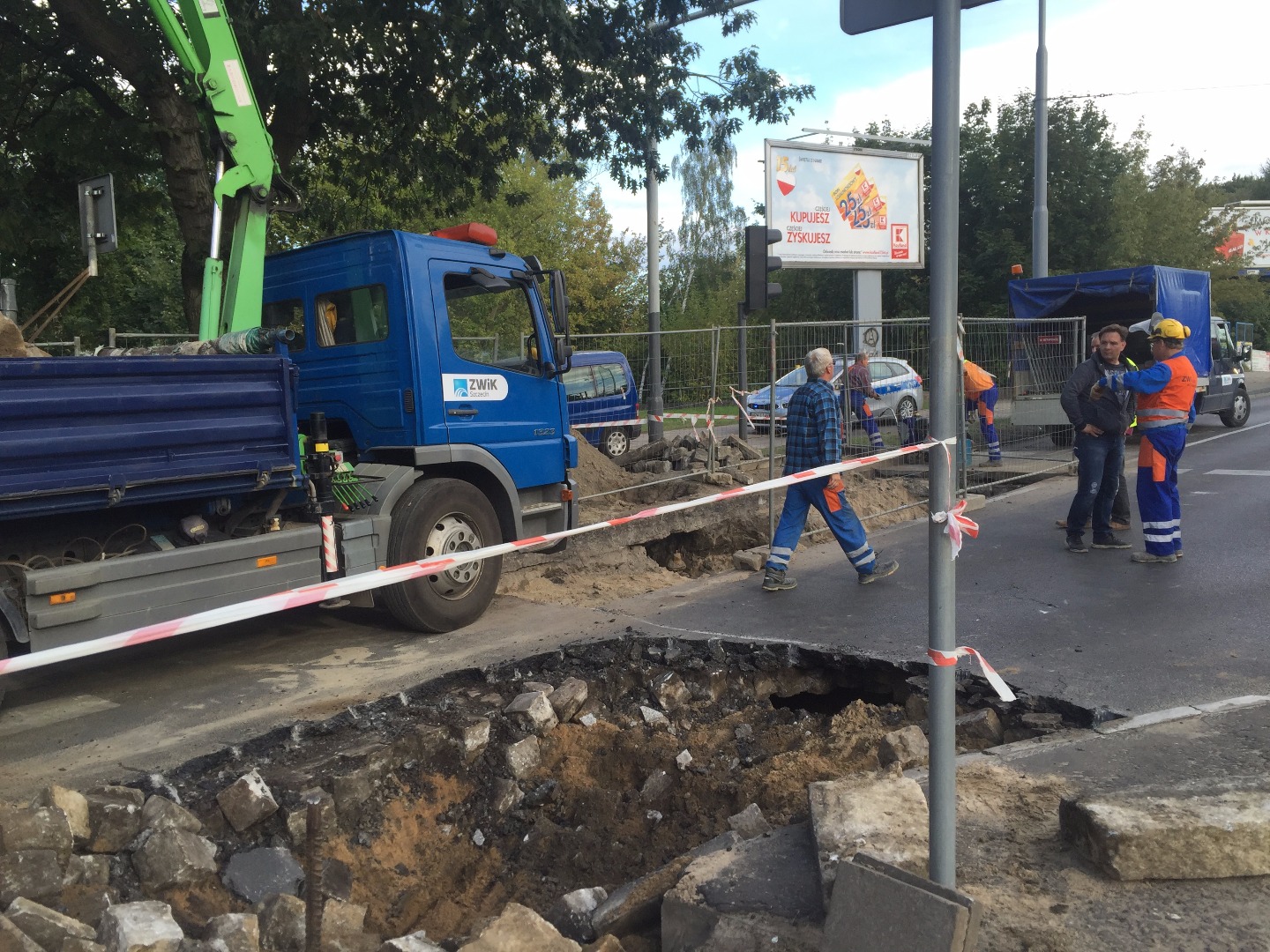 Jak informuje Piotr Landowski, rzecznik Zakładu Wodociągów i Kanalizacji, trwają starania, aby jeszcze w poniedziałek wieczorem doprowadzić przynajmniej jeden pas jezdni do stanu umożliwiającego przejazd. Kładzenia asfaltu można się spodziewać we wtorek.