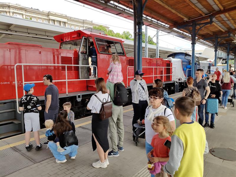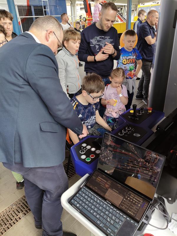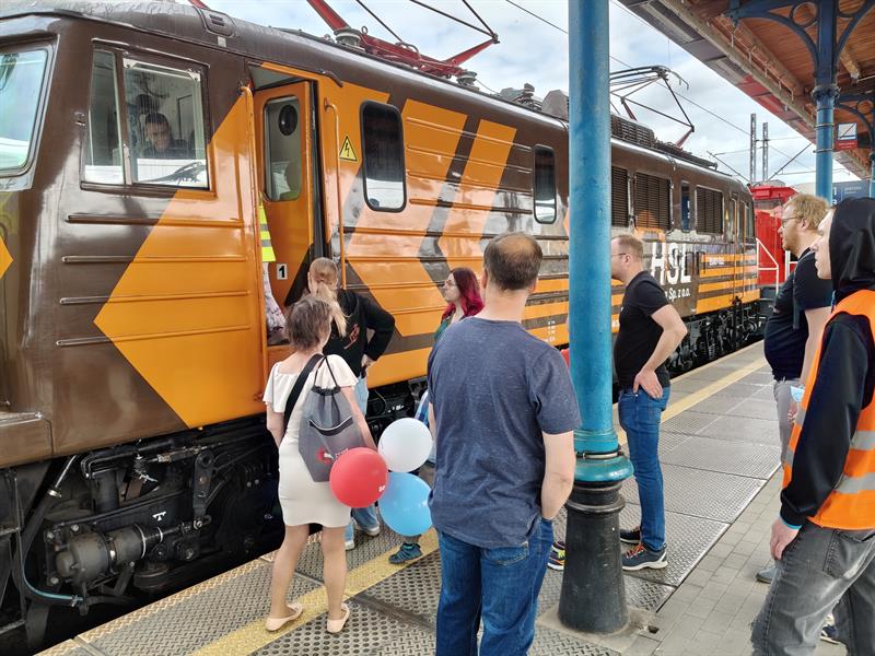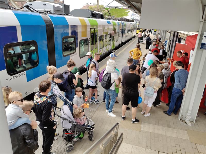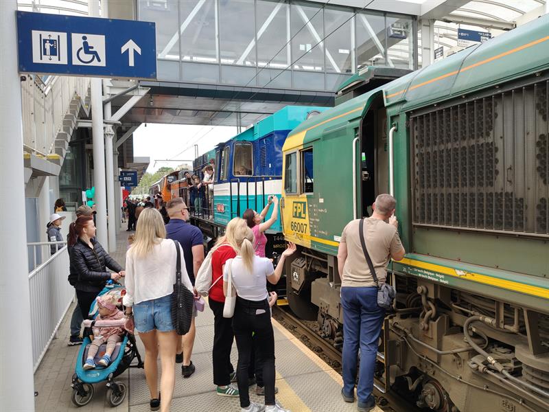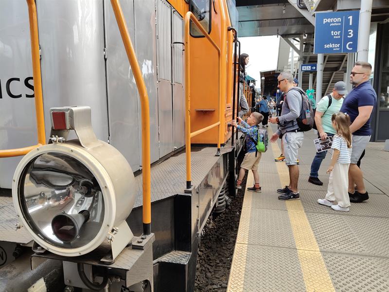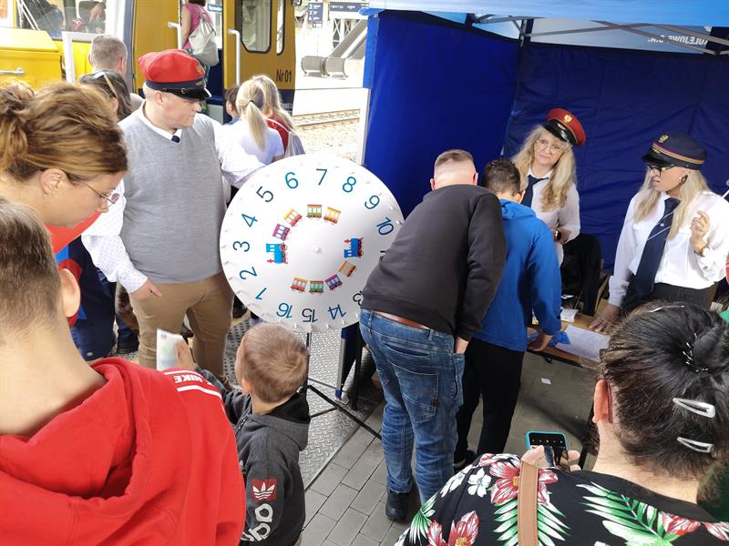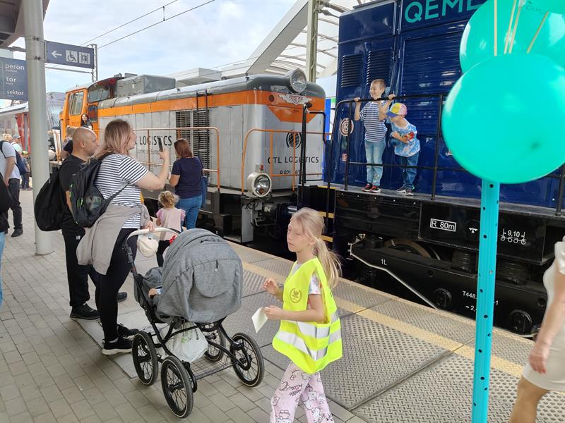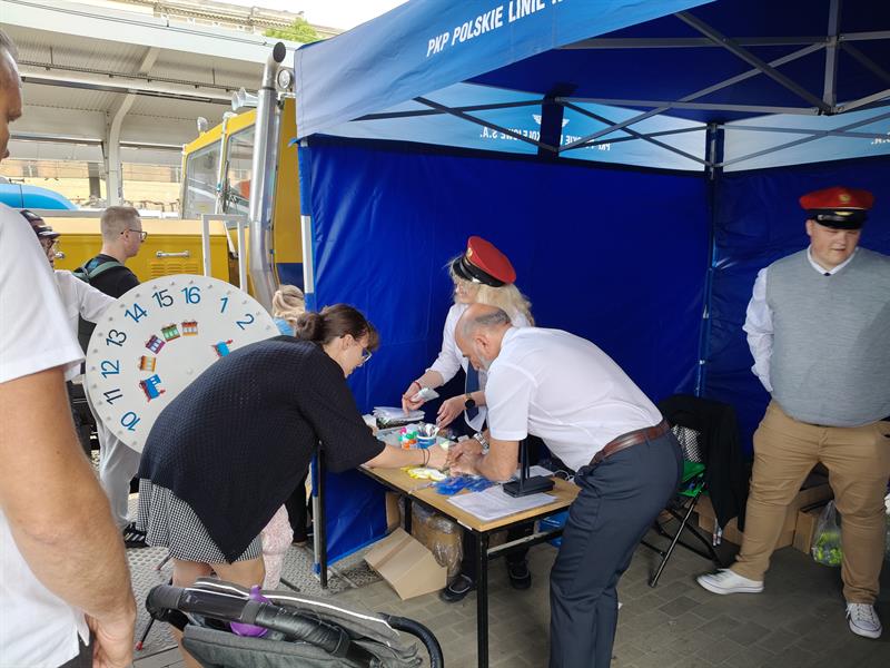Tylko w tym miejscu i tylko do godz. 15 można zwiedzać tabor PKP - w tym „Chrobrego”, wziąć udział w wycieczce pociągiem (o godz. 14.38 wyruszy „Amelia”), a za sprawą symulatorów wcielić się czy to w rolę maszynisty mknącej po torach lokomotywy, czy też prześwietlać bagaż pasażerów składu jako strażnik ochrony kolei. Na wszystkich czeka może słodyczy, balonów, kredek, darmowe napoje, a też nagrody w konkursach wiedzy „Bezpieczny Przejazd”, jak również pełne niespodzianek koło „Zgaduj Zgaduli”.
