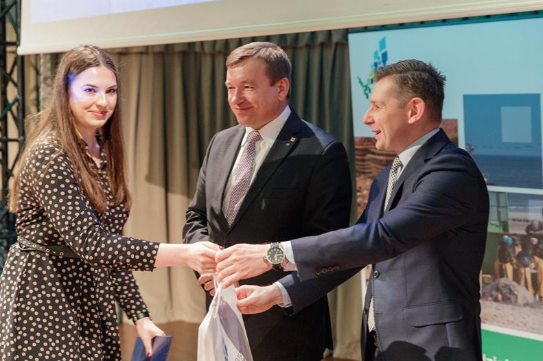 Na zdjęciu: Wicemarszałek Jarosław Rzepa i Andrzej Binka, p.o. Dyrektora Wydziału Rolnictwa i Rybactwa Urzędu Marszałkowskiego gratulują I miejsca Aleksandrze Lodze, uczennicy III LO w Szczecinie.