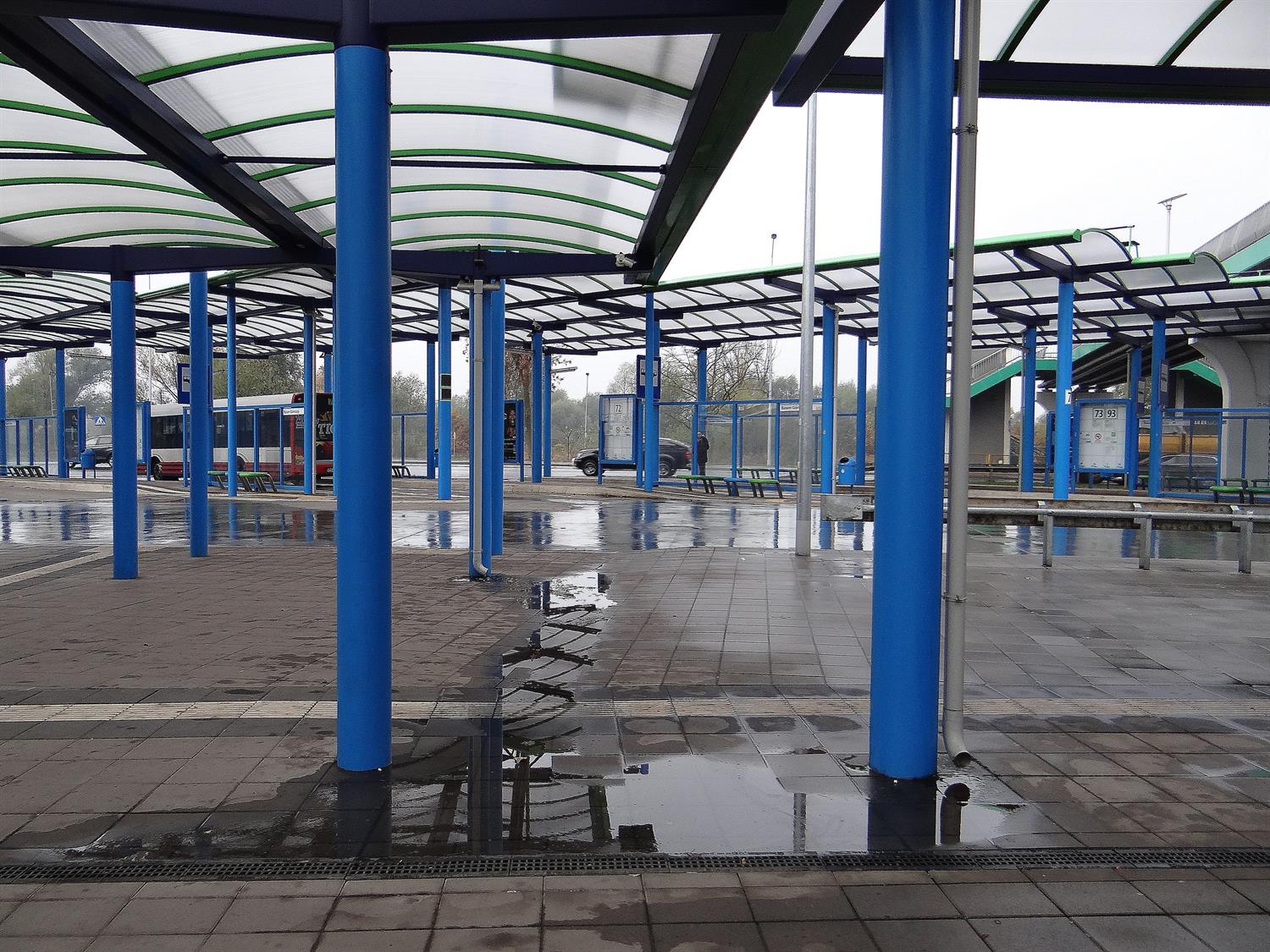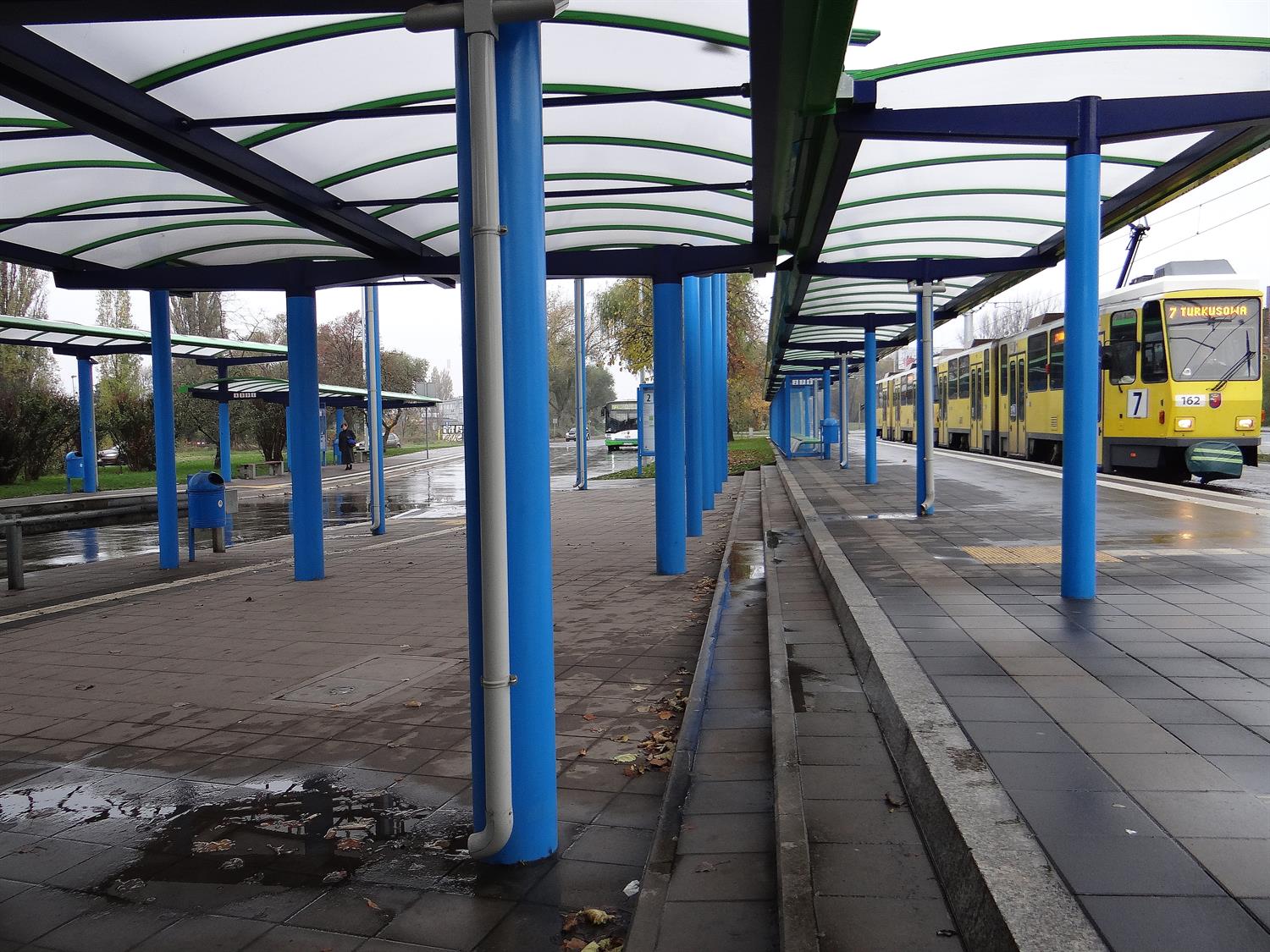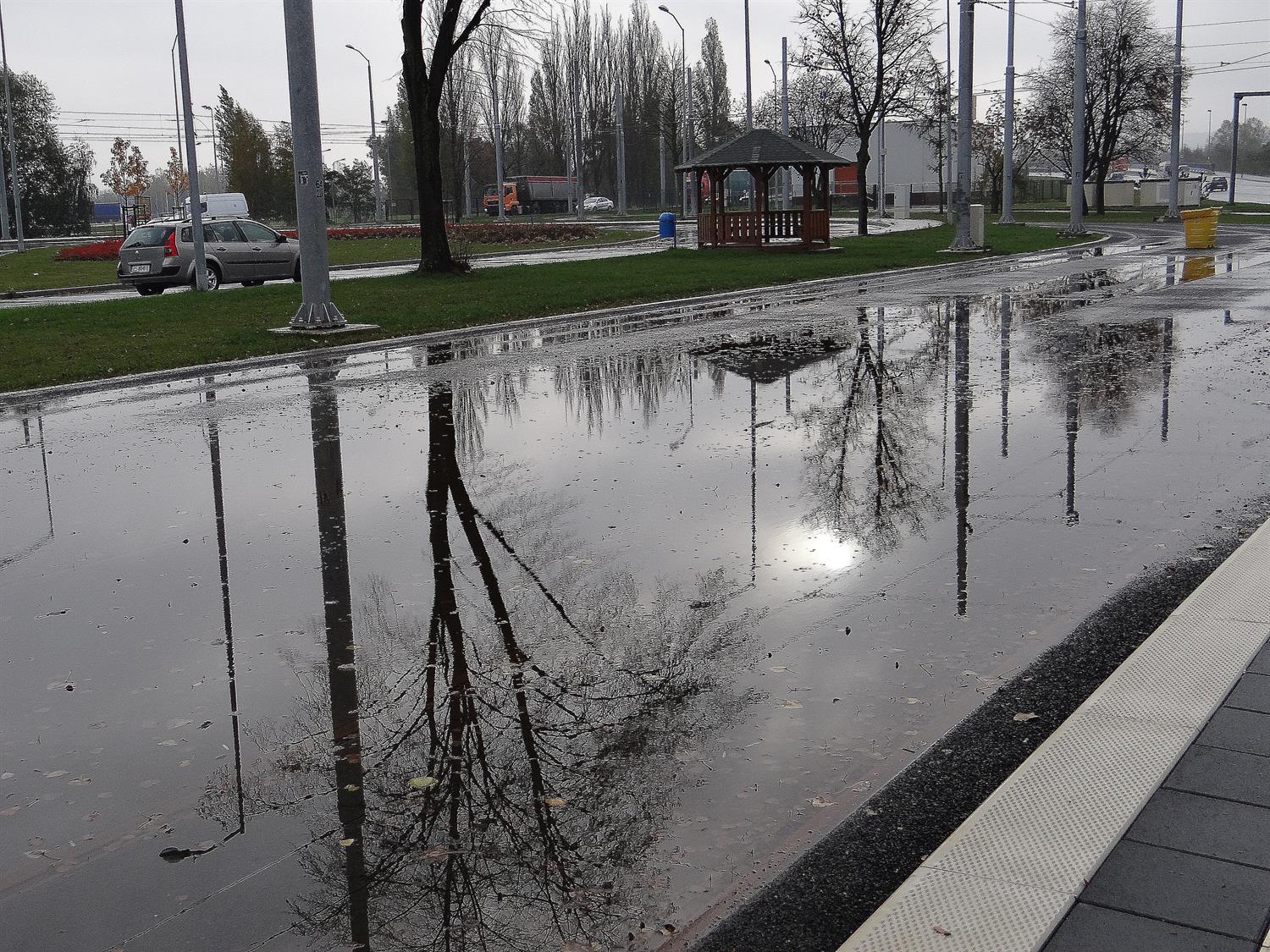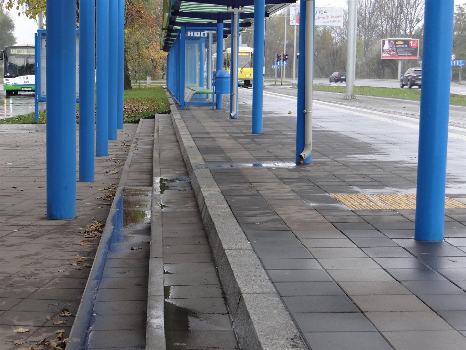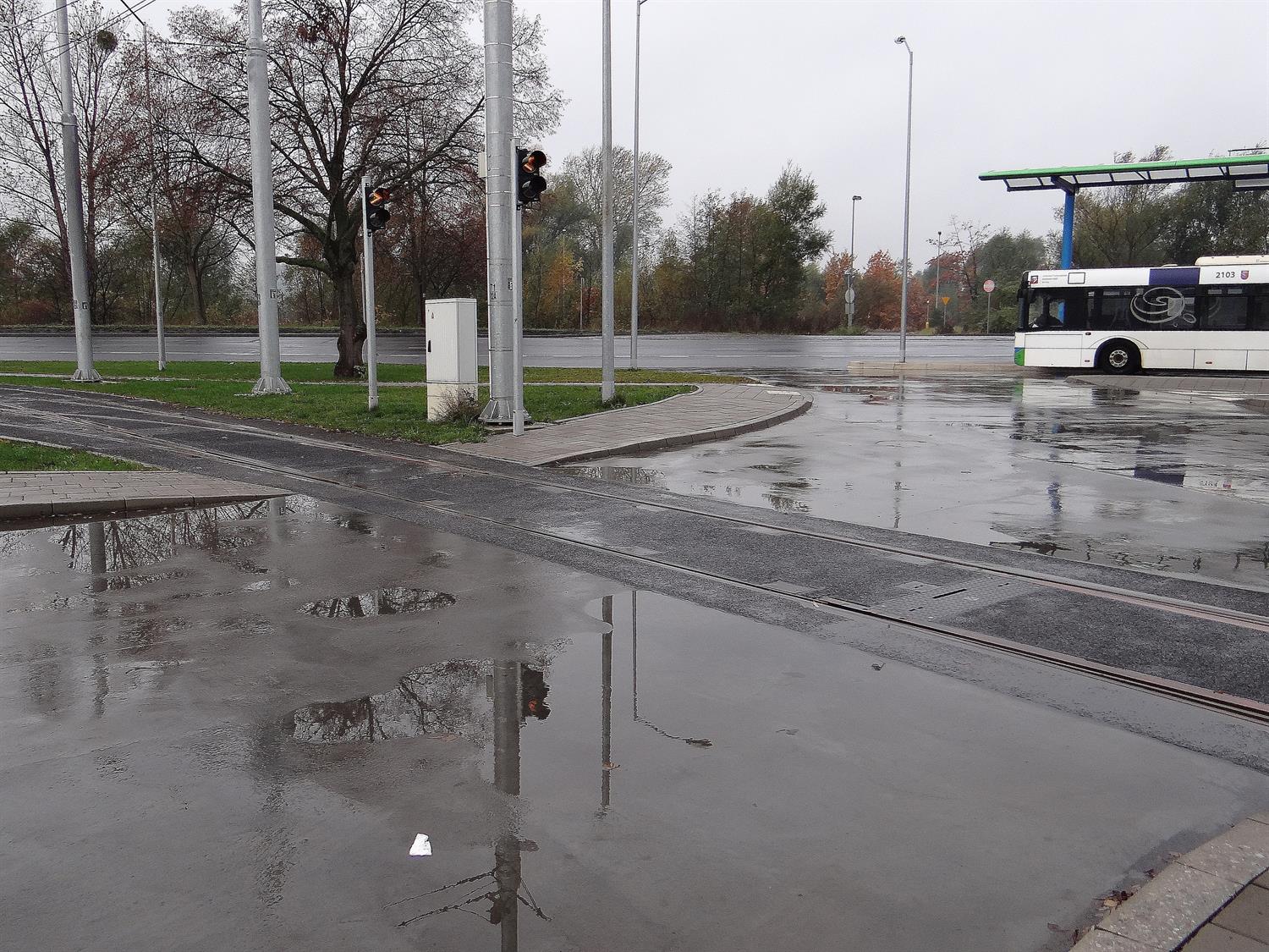 Co z pozostałymi usterkami w obrębie m.in. przebudowanej pętli Basen Górniczy, w tym zalewanymi torami postojowymi przed nawrotem dla tramwajów, w rejonie rozjazdów i dojazdów, zastoinami i bajorami na jezdniach tuż przy torach, betonowych jezdniach dojazdowych i przy peronach przystankowych? Co wreszcie z odprowadzeniami wody rynnami z wiat wprost na przystanki i w pasy chodników, gdzie kratki ściekowe są, ale deszczówka do nich nie jest w stanie spłynąć, bo brak odpowiednich spadków w chodnikach i woda zamiast spływać tworzy kałuże i rozlewiska nawet pod wiatami? Zdjęcia, które doskonale ilustrują te miejsca, przesłaliśmy do rzeczniczki Tramwajów Szczecińskich na początku listopada, przypominając, że minie niebawem półtora roku eksploatacji i nic w tej sprawie się nie dzieje.