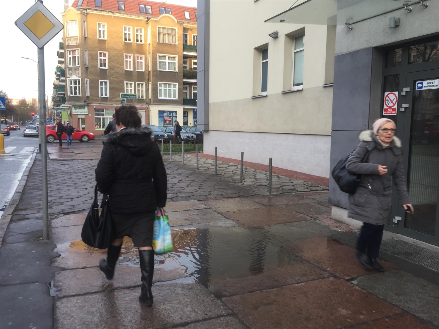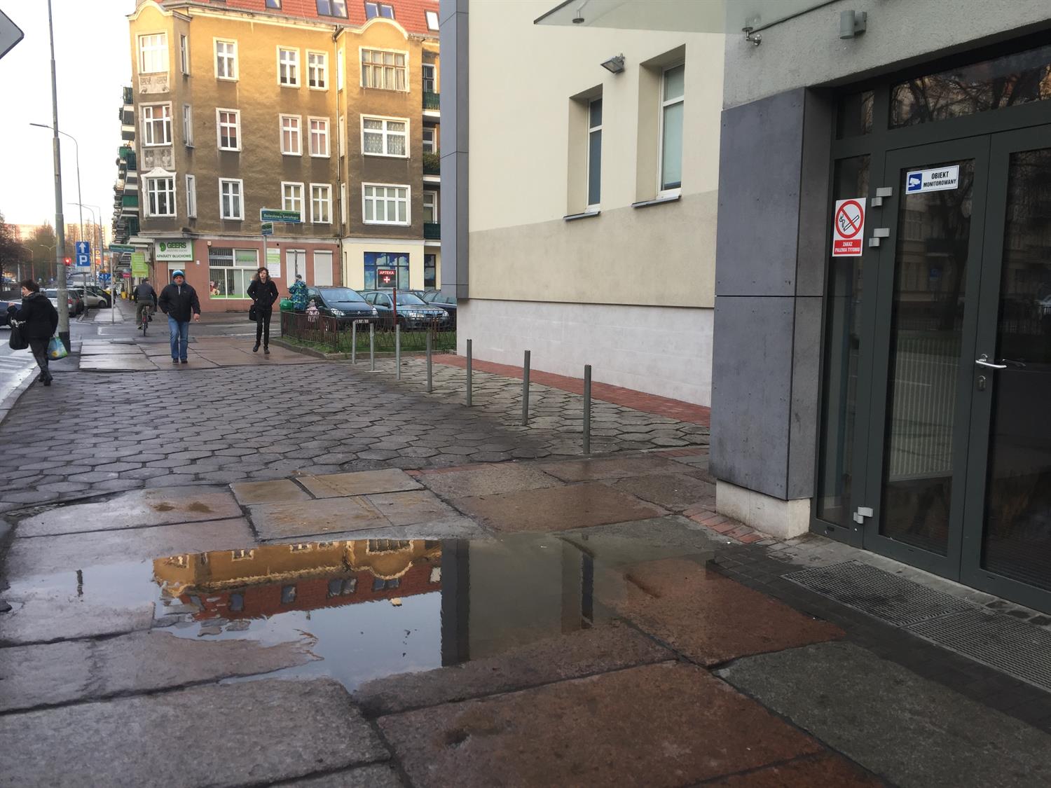 Tak wygląda chodnik na wprost jednego z bocznych wejść do budynku przychodni Wojewódzkiego Ośrodka Medycy Pracy od ul. Krzywoustego w Szczecinie. Zapadlisko, coraz większe i niemiła niespodzianka tak dla pacjentów odwiedzających gabinety lekarzy w przebudowanym i odnowionym całkiem niedawno budynku WOMP. Tak jak i dla pieszych. A w dodatku to rejon przystanku na trasie autobusów obleganej przez pasażerów linii 75. Czas, by tę przeszkodę usunąć. ©℗