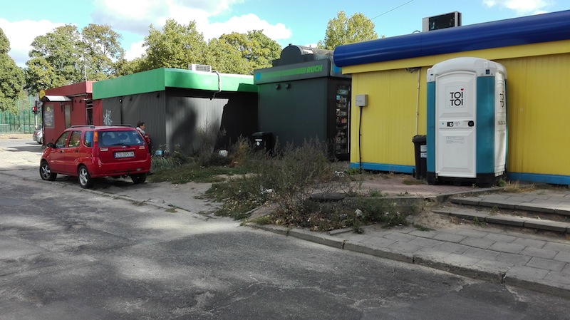Tak (na zdjęciu) wygląda teren za kioskami na szczecińskim osiedlu Kaliny koło sklepu „Syriusz”. Pełno chwastów, śmieci, połamane płyty chodnikowe i murki. Całość dopełnia dziurawa ulica i stojąca tu ubikacja. Teren należy do miasta, które powinno w końcu doprowadzić go do porządku.