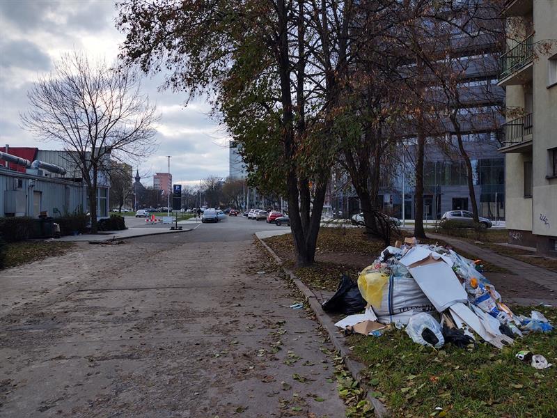 Na dodatek, między CH Fala i wspomnianym domem przy Odzieżowej 29-32 już od ponad trzech miesięcy leży sterta śmieci. Wbrew pozorom, nie na działce nr 15/2 należącej do SM Śródmieście, a właśnie na działce nr 13/19, czyli na placu Witosa.