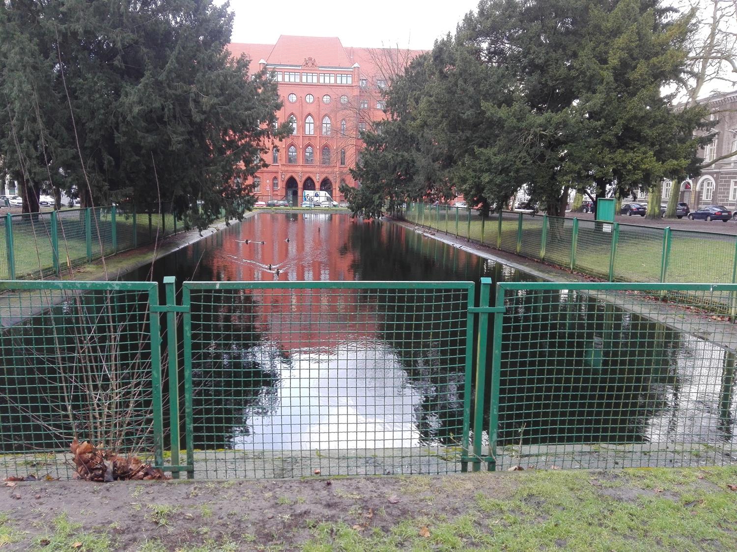 Centralnym punktem miał być efektowny wodny pióropusz fontanny, a wokół niej – po obrysie okręgu – posadowione siedziska w amfiteatralnym stylu. Na bazie zabytkowych platanów uwagę przyciągać miała oryginalnie zaaranżowana zieleń. Miał być także otwarty wodny tunel – niczym dziecięca zabawka. Natomiast jest – jak widać – brudny basen przeciwpożarowy, w którym pływają dzikie kaczki.