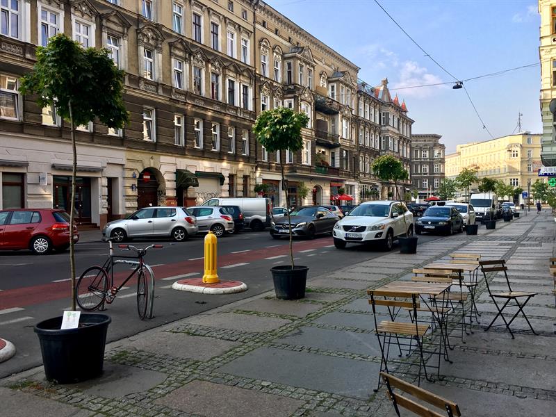 czyli nadal piesi będą chodzić slalomem. Nie omijają potencjalnie źle zaparkowanych samochodów, ale muszą omijać cool stoliczki i stojaczki z rowerami.