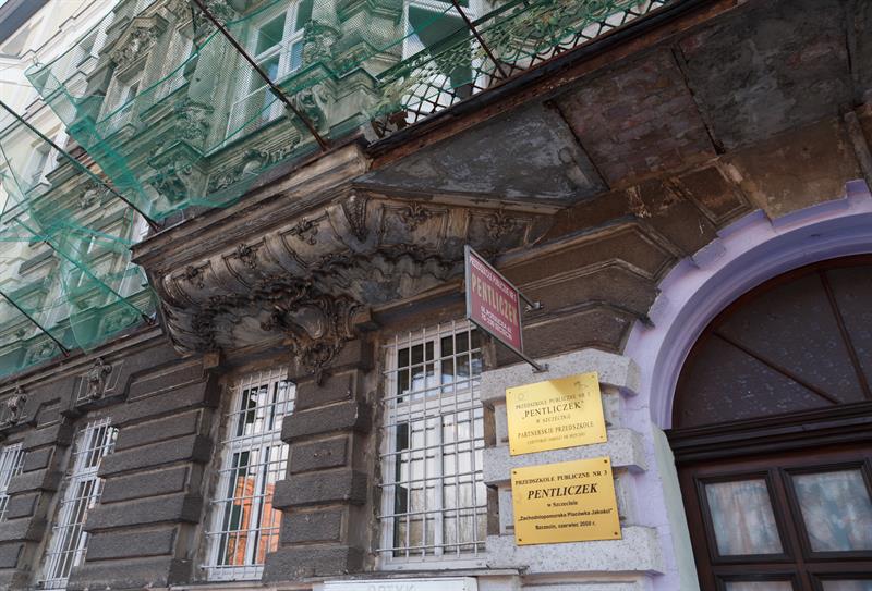 Elewacja budynku przy ul. Potulickiej w Szczecinie, gdzie mieści się przedszkole nr 3, jest w fatalnym stanie. Miastu udało się w końcu ogłosić przetarg na jej remont.