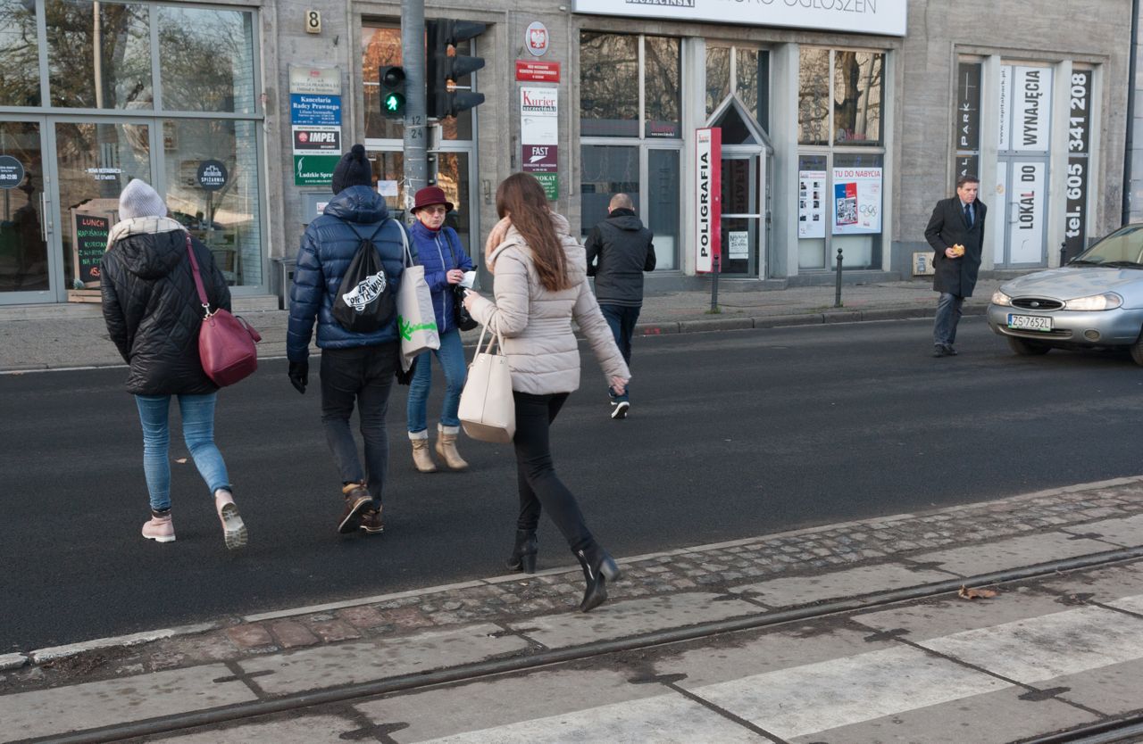 Piesi też mają mieszane uczucie. Przy Bramie Królewskiej przechodzą przez ulicę nie przeskakując przez kałuże tworzące się wcześniej w ogromnych koleinach. Mimo to wciąż czują się niepewnie. Samochody bowiem często zatrzymują się na światłach w miejscu, gdzie kiedyś była zebra - stają już za sygnalizatorem. Bywa, że piesi przechodząc z jednej strony ulicy na drugą muszą kluczyć pomiędzy autami zatrzymującymi się na przejściu.