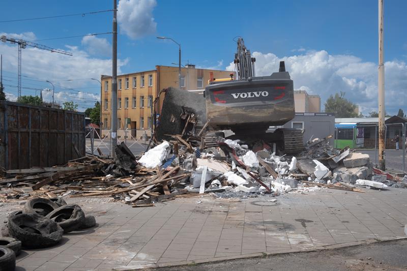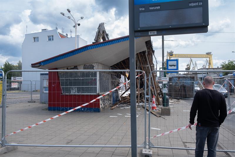 Do piątku (27 maja) powinna zakończyć się rozbiórka budynku dawnej poczekalni i dyspozytorni przy pętli Stocznia Szczecińska. W jej miejscu powstanie tymczasowy chodnik. Nowego obiektu na razie pasażerowie nie mogą się spodziewać.
