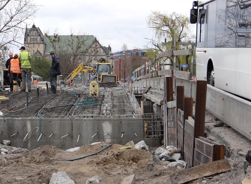 Obecnie trwają montaż zbrojenia podpór oraz betonowanie płyty pomostu samej jezdni od strony pobliskiej bazy WOPR. W tym etapie do wylania jest ok. 135 m sześc. betonu. Umowa ZDiTM z wykonawcą remontu przewiduje jego finał w listopadzie tego roku. A koszt tej kapitalnej przebudowy ma wynieść nieco ponad 5,4 mln zł. ©℗
