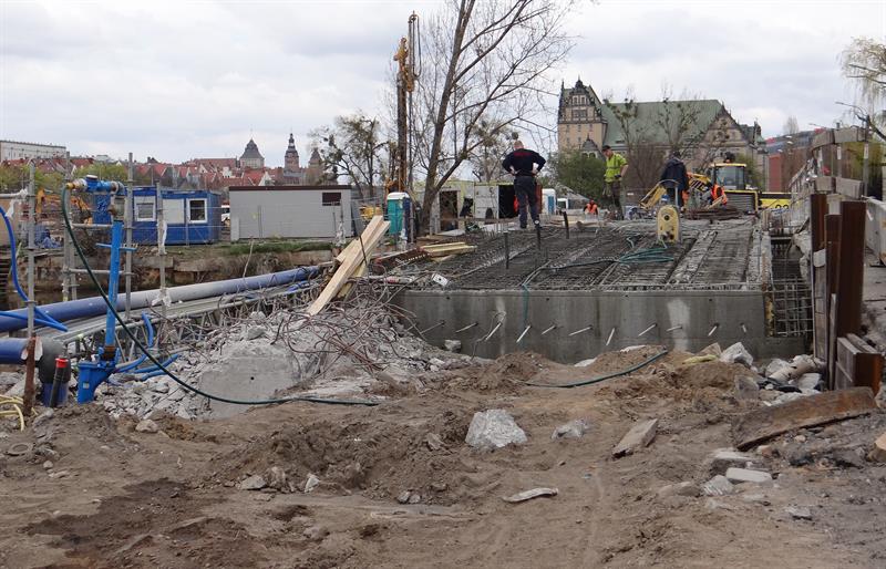 Ta niewielka przeprawa łączy - przypomnijmy - ważny rejon w obszarze wysp szczecińskiego Międzyodrza, a konkretnie Łasztownię z Kępą Parnicką. Do tej pory zakończony został tam połówkowy montaż 12 belek prefabrykowanych o łącznej masie ponad 104 ton. Do końca marca wbudowano też ponad 17 ton zbrojenia przęseł.
