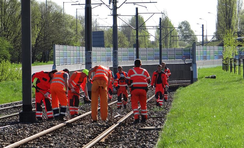 Tym razem składy z odcinka trasy tzw. szybkiego tramwaju – o czym już informowaliśmy – urzędnicy magistratu wycofali, bo fragment zbudowanego tam torowiska i oddanego do użytku w końcu sierpnia 2015 r. wymagał naprawy. Operacja zwana oficjalnie korektą układu torowego i montażem urządzeń wyrównawczych to w praktyce przebudowa obu torów na łuku w wykopie.