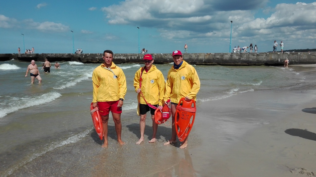 Ratownicy z firmy „Doran” Pawła Dornantowicza z Łódzi (na zdjęciu od lewej: Przemysław Kalinowski, Bartosz Wiktor i Mariusz Badoń) weszli do wody i zaczęli ratować ludzi uwięzionych w betonowej pułapce, gdzie fala rzucała nimi o konstrukcję. Ostatecznie udało się uratować wszystkich, ale niektórzy doznali otarcia skóry i niegroźnych obrażeń.