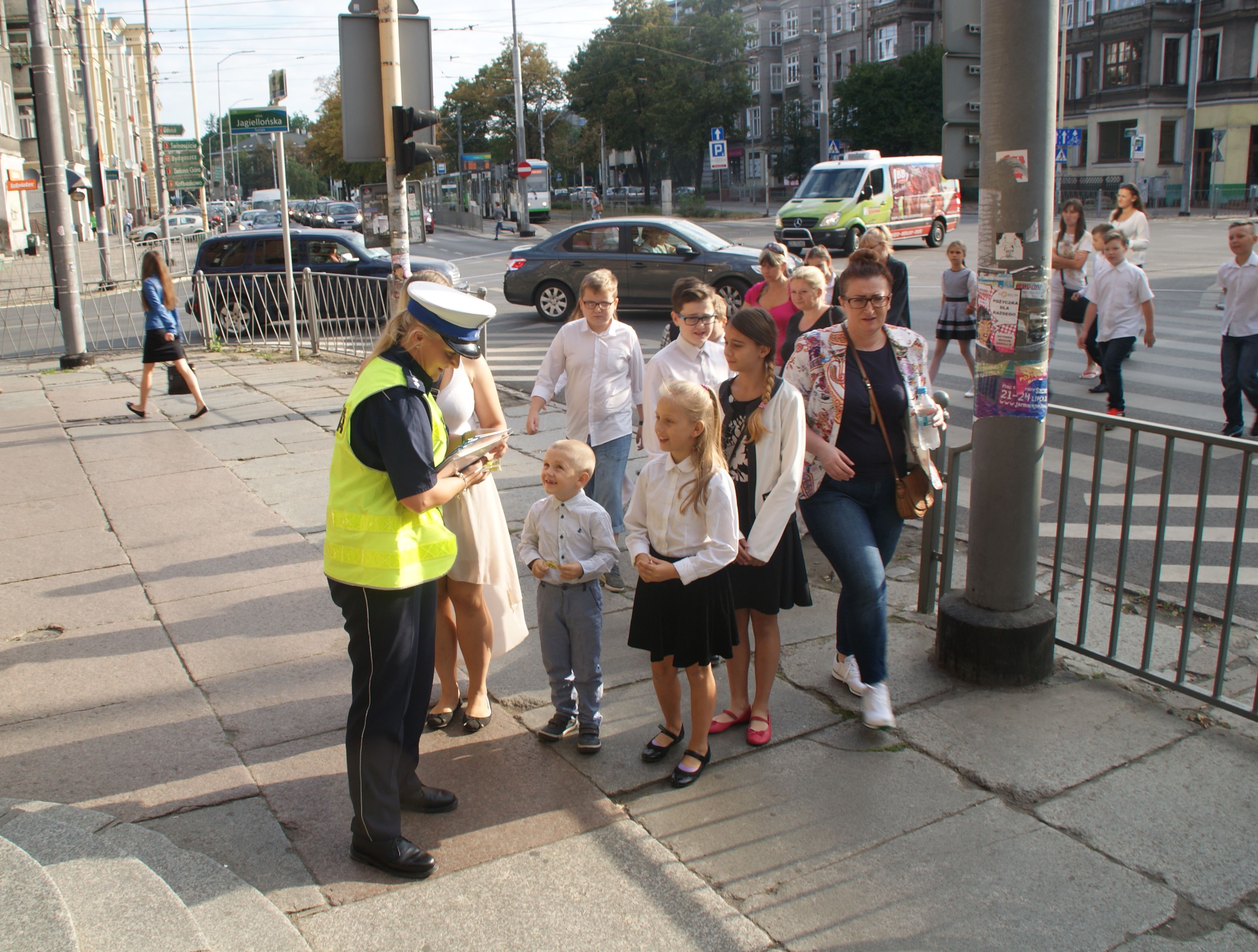 W dniu rozpoczęcia nowego roku szkolnego funkcjonariusze z Wydziału Ruchu Drogowego Komendy Miejskiej Policji w Szczecinie wzięli udział w uroczystej inauguracji roku szkolnego w SP nr 1 przy al. Piastów 6 w Szczecinie. Tego dnia mundurowi prowadzili wzmożone kontrole pojazdów w obrębie placówki. Rozdawali także wszystkim uczniom plany lekcji wraz ze słodką niespodzianką. Dla pierwszoklasistów, którzy po raz pierwszy usłyszeli dzwonek szkolny, były przegotowane specjalne prezenty. Otrzymali oni pakiety bezpieczeństwa, w których znajdowały się m.in. odblaski oraz karta informacyjna z numerami alarmowymi. (p)