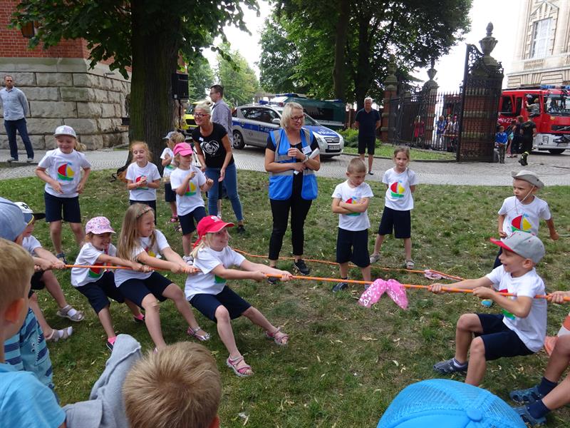 Festyn był połączeniem akcji profilaktycznych z zabawami i konkursami. Najmłodsi brali udział m.in. w grze twister, przeciąganiu liny, podrzucaniu balonu czy kręceniu hula-hoop. Poznali również zasady bezpiecznego i zdrowego wypoczynku oraz dowiedzieli się, jak udzielić pierwszej pomocy w razie wypadku.