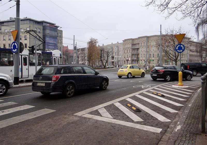 Zakończyły się tam prace przy jego malowaniu na jezdniach i montażu dodatkowych szykan na niesfornych kierowców. Teraz są tam po dwa pasy ruchu dla aut w każdą stronę: środkowy i wewnętrzny wzdłuż wydzielonego torowiska z pasem autobusowo-tramwajowym. Tylko z nich teraz kierowcy mogą wjechać na ronda wokół obu placów. Skrajne prawe służą jako parkingi i wydzielona ścieżka dla rowerzystów.