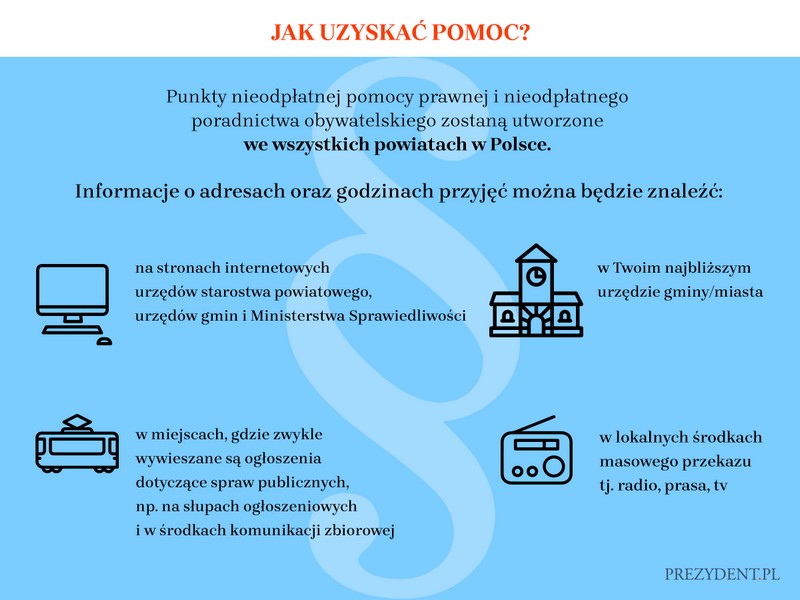 Ustawa zmieniająca dotychczasowe zasady działania nieodpłatnej pomocy prawnej weszła w życie 1 stycznia br. Dzięki nowym przepisom, wprowadzonym z inicjatywy prezydenta RP, z tego rodzaju świadczenia skorzystać może każdy, kto zdeklaruje, że nie jest w stanie ponieść kosztów pomocy odpłatnej.