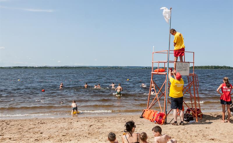 - Mamy białą flagę nad kąpieliskiem - informował „Kurier" w czwartek (5 bm.) Jacek Kleczaj, prezes szczecińskiego WOPR. - Pracujemy w Dąbiu w pełnym 5-osobowym składzie. Strzeżemy bezpieczeństwa zarówno od strony plaży, jak i wody. Rotacyjnie, dlatego w stałym zasięgu wzroku plażowicze będą mieli trzech ratowników.