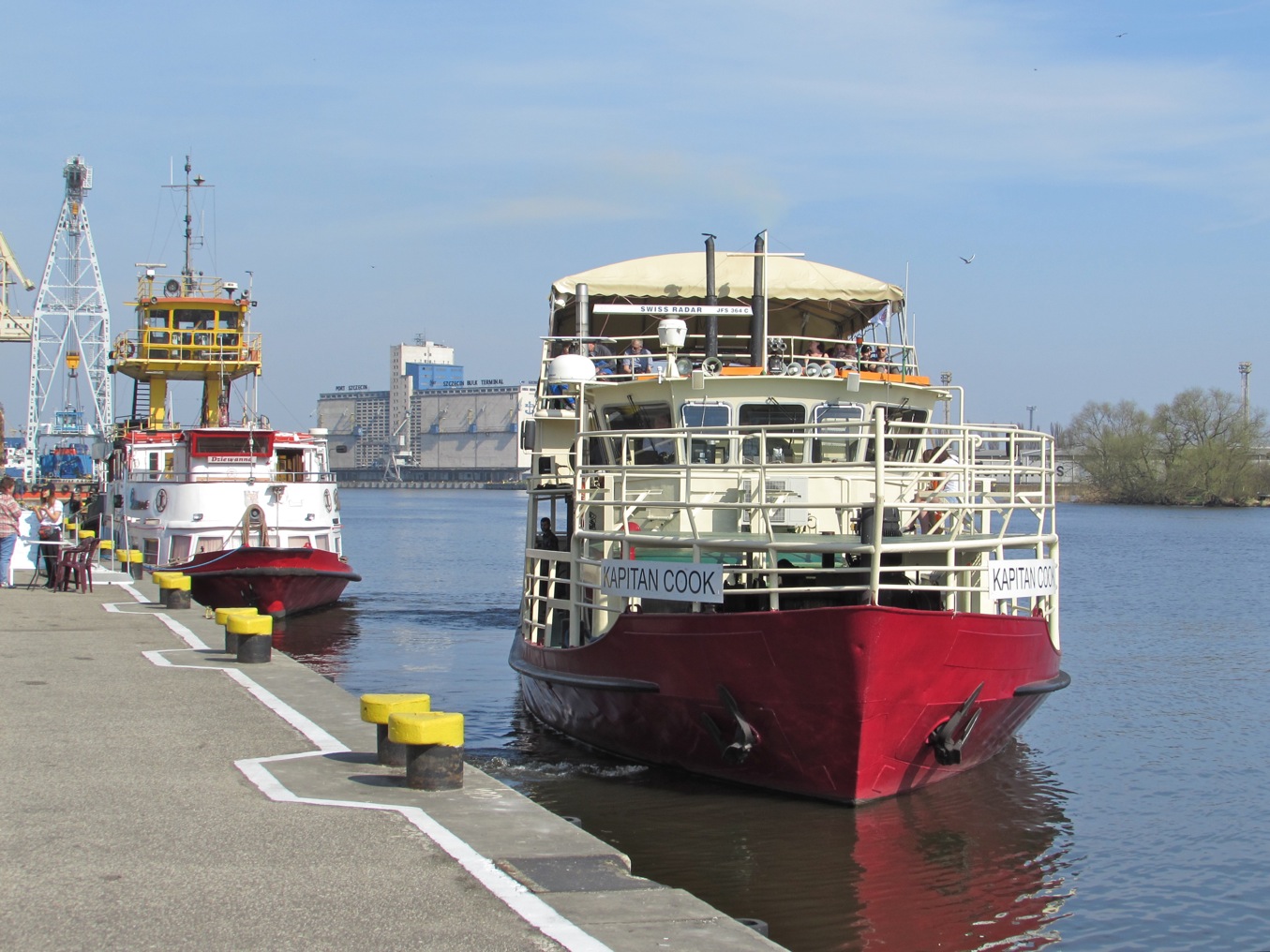 Regularne wycieczki po Odrze oferuje też kapitan Just, armator „Dziewanny” i „Kapitana Cooka”. Ten drugi statek został kupiony w zeszłym roku. Przeszedł remont i już przewozi turystów. Może wziąć na pokład 120 pasażerów („Odra Queen” i „Peene Queen” do 140, a „Dziewanna” do 200).