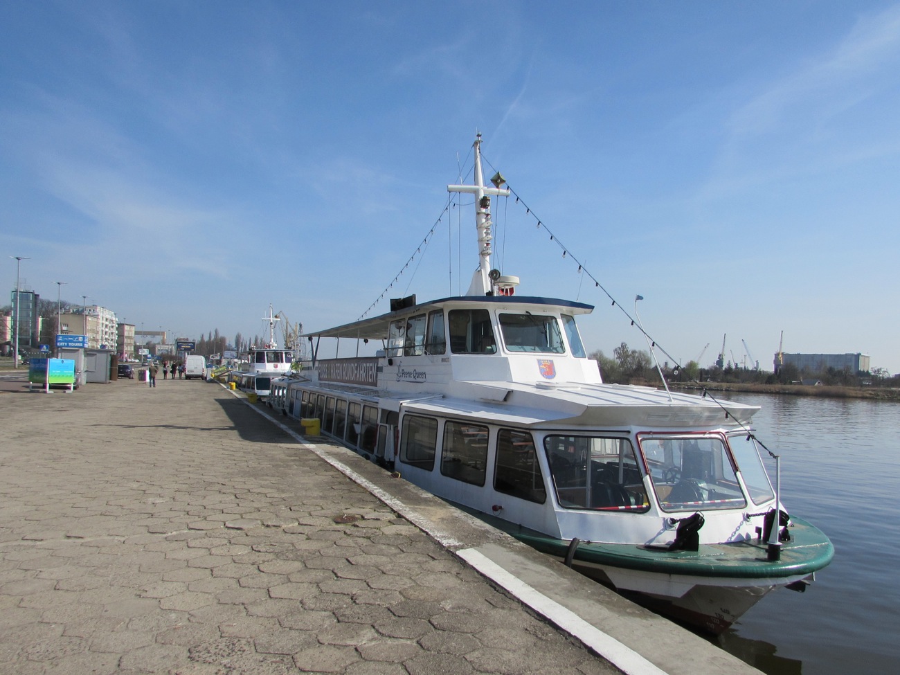 Spółka ma do dyspozycji dwa statki: „Odra Queen” i „Peene Queen”. Od najbliższej soboty chętni mogą się wybrać na wycieczkę po Odrze o godz. 12 lub 15. Od maja do sierpnia rejsów będzie więcej (o godz. 12, 13, 15 i 17). Trasa rozpoczyna się u stóp Wałów Chrobrego. Na wysokości Starego Miasta statek zawraca i płynie obok Wyspy Grodzkiej, elewatora „Ewa”, dalej Kanałem Grabowskim i Przekopem Mieleńskim wzdłuż Gryfii, następnie w okolicy nabrzeży Huk i Snop nawraca.