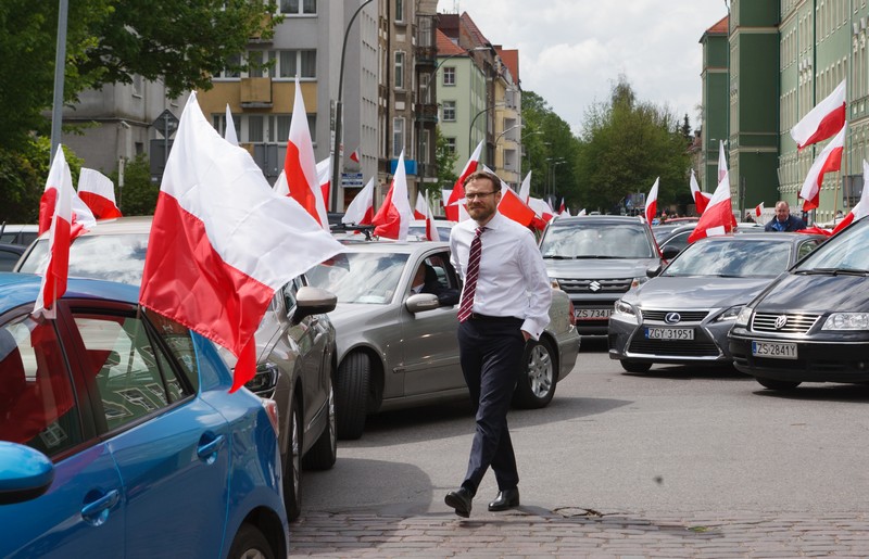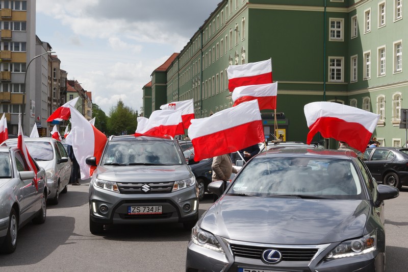 Kolumna samochodów wyruszyła w piątek po godz. 13 ze skrzyżowania ulic Odrowąża i Felczaka w Szczecinie. To jedyny taki przejazd w mieście zorganizowany przez Prawo i Sprawiedliwość z okazji Święta Narodowego Trzeciego Maja. W wydarzeniu udział wzięli mieszkańcy oraz politycy PiS.