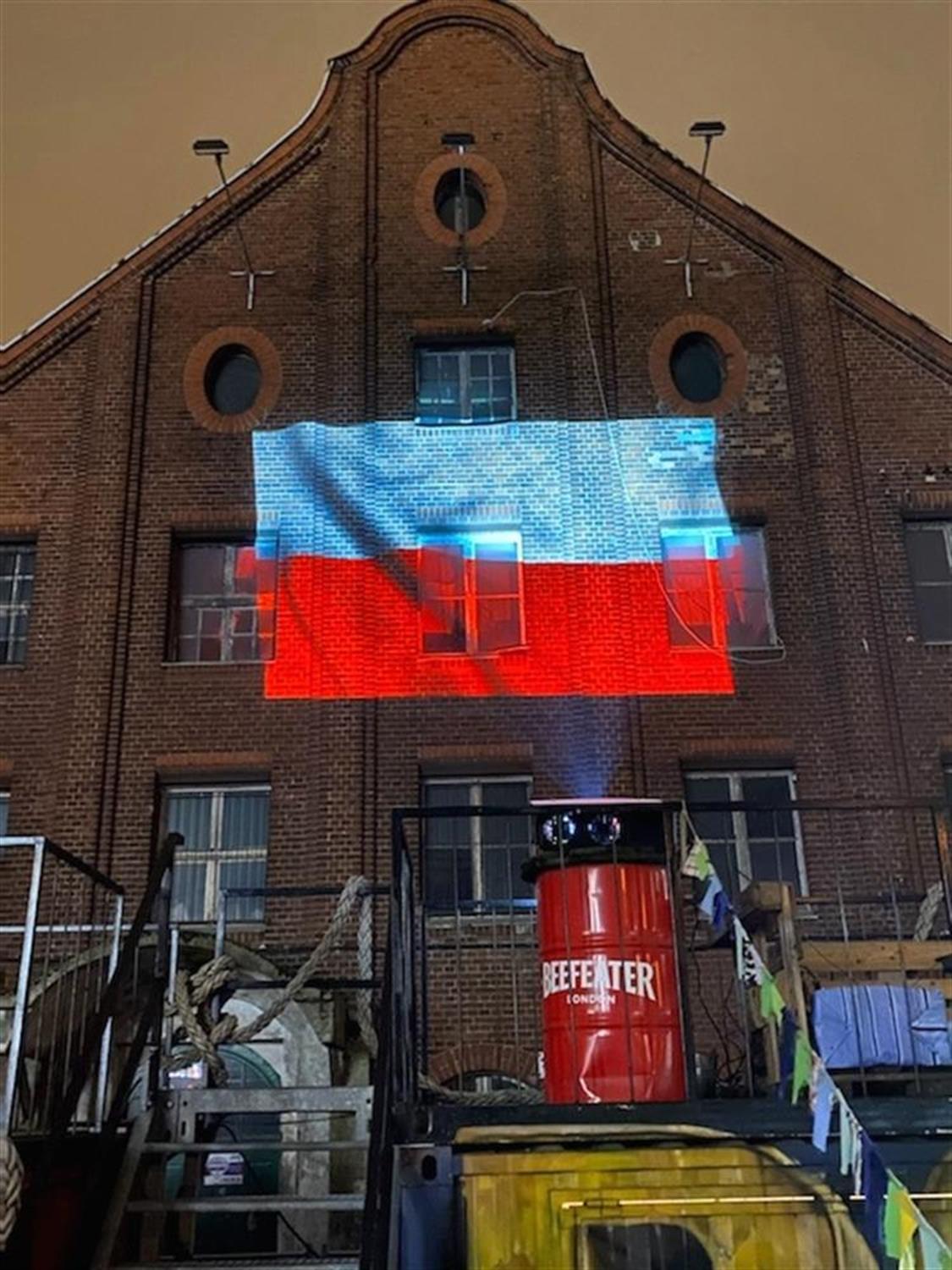 Gdy zapadł zmrok, na ścianie jednego z budynków na szczecińskiej Łasztowni w środę (11 listopada) pojawiła się łopocząca flaga Polski. Widok był projekcją światła laserowego. To jeden z akcentów obchodzonego Święta Niepodległości.