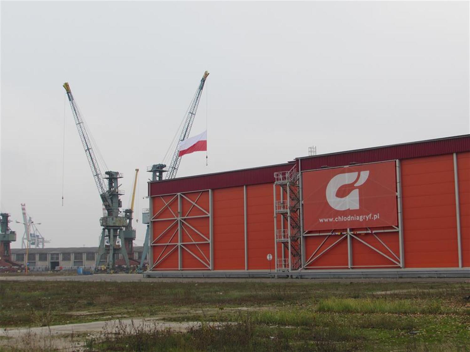Biało-czerwona powiewa też na portowym żurawiu znajdującym się na nabrzeżu Bułgarskim, przy nowej chłodni ryb morskich. To z kolei inicjatywa spółek Centrum Logistyczne Gryf oraz Gryf Nieruchomości, następczyń dawnego PPDiUR „Gryf”. Gala banderowa i flaga znalazły się ponadto na placu Gryfitów - pomiędzy chłodnią a Starą Rzeźnią.