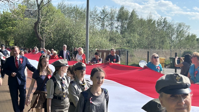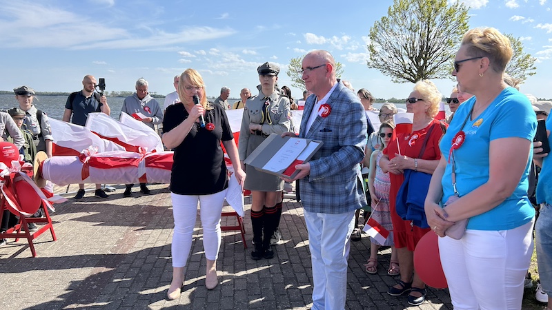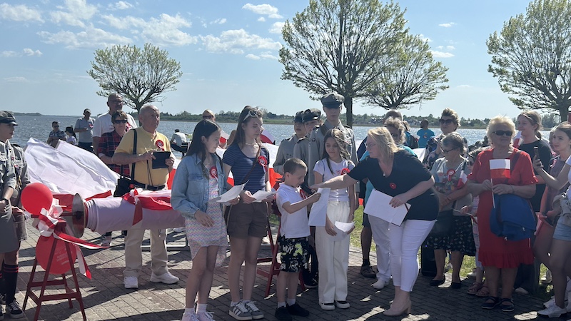 W czwartek 2 maja mieszkańcy i turyści, którzy przybyli na majówkę do Międzywodzia, przeszli ulicami miasta niosąc 100-metrową biało-czerwoną flagę. Na czele licznego pochodu, w Dniu Flagi, szedł m.in. Stanisław Mączka, sołtys Międzywodzia.