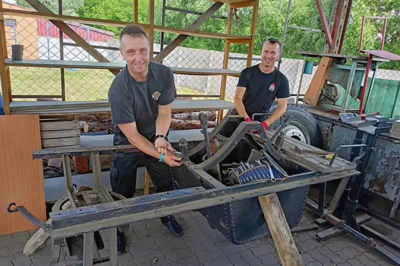 Renowacja „nowego” wozu prowadzona jest z dbałością o każdy szczegół. Pojazd został rozebrany na części, a każda z nich po wypiaskowaniu i pomalowaniu nabrała dawnego kolorytu. Naprawiane są nie tylko elementy metalowe, ale i odtwarzane te wykonane z drewna. Pracami zajmują się strażacy pełniący służbę w ramach drugiej zmiany. Nie ukrywają przy tym, że wyzwanie wymaga nie tylko nakładu pracy, ale i sporych środków finansowych. Na szczęście znajdują się darczyńcy, do których inicjatorzy renowacji serdecznie się uśmiechają. Zabytkowy wóz po złożeniu stanie przed siedzibą białogardzkiej straży pożarnej. W okresie jesienno-zimowym będzie chowany do garażu. ©℗