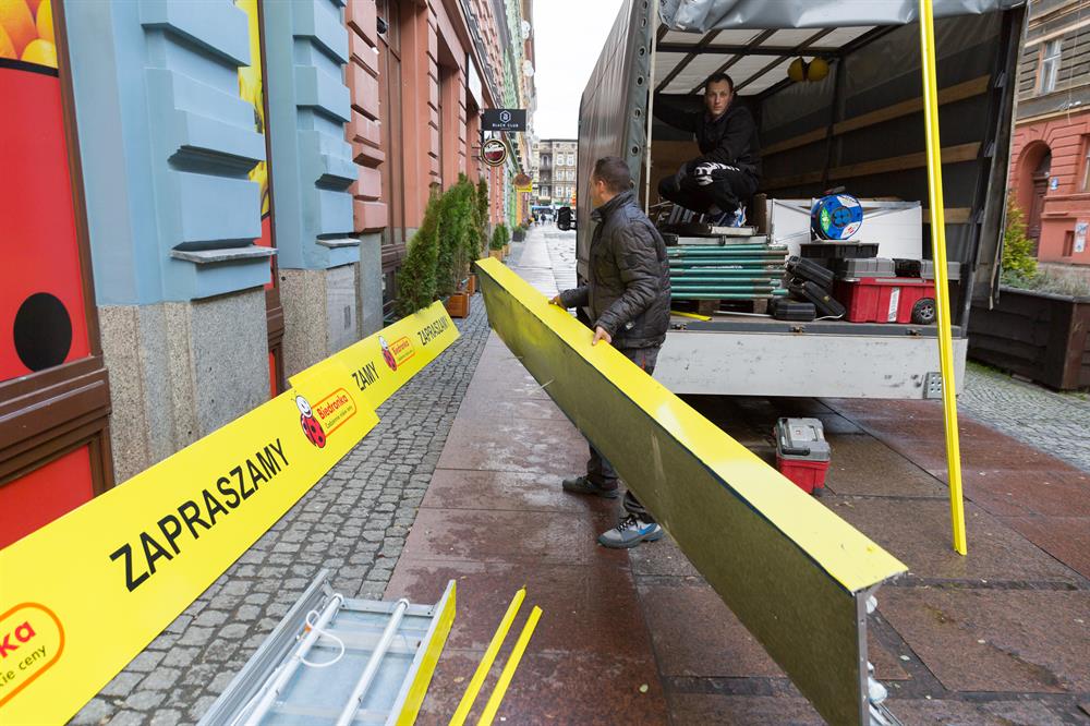 Po burzy w internecie, a także na naszych łamach sieć „Biedronka" zmienia witrynę swojej placówki na deptaku Bogusława. Rażąco odbiegające od secesyjnego otoczenia oklejenie sklepu ma być zastąpione rozwiązaniami lepiej pasującymi do zabytkowej kamienicy.