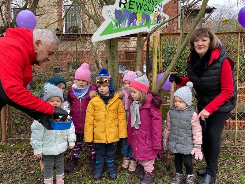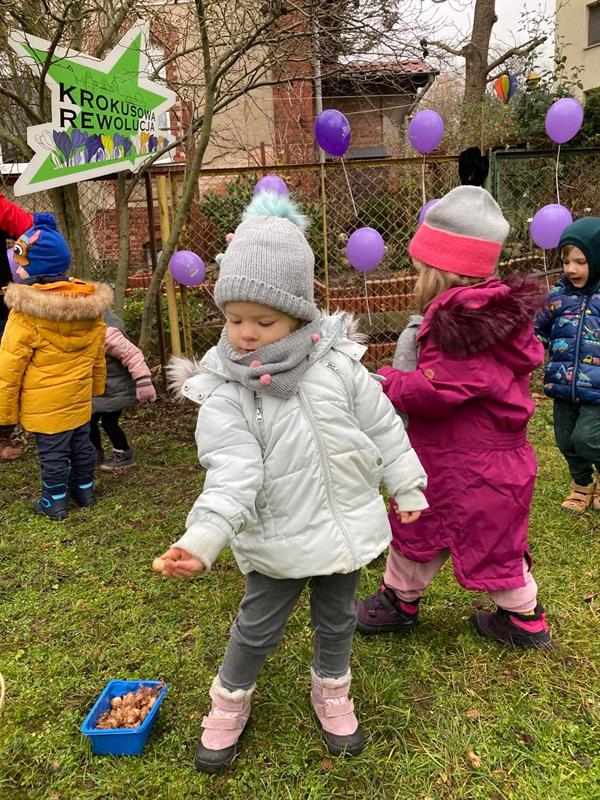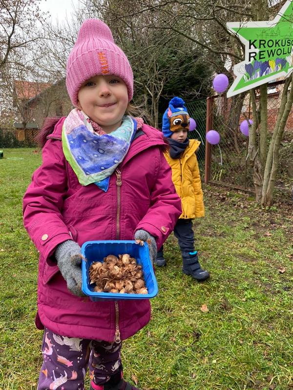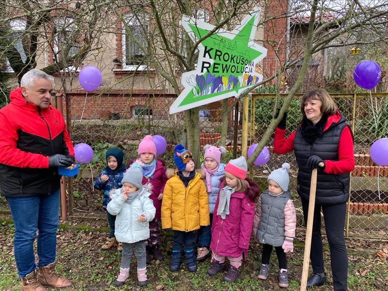 Kolejne krokusowe cebulki posadzone zostały w Szczecinie. Tym razem przez najmłodszych uczestników Krokusowej Rewolucji - dzieci z przedszkola „Małe Omnibuski” przy ulicy Zdrojowej. Grupa „Biedronki” z zapałem przystąpiła do pracy, by już wiosną cieszyć się krokusami w kolorach fioletowych i żółtych.