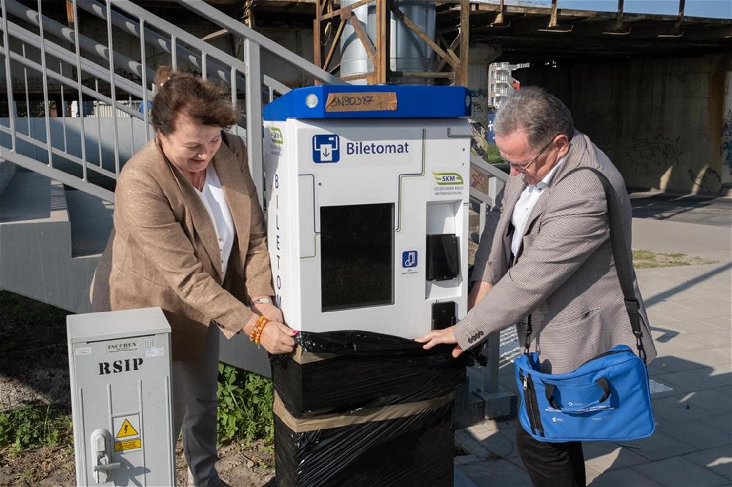Dyrektor biura stowarzyszenia Szczecińskiego Obszaru Metropolitarnego Roman Walaszkowski i wicedyrektor Elżbieta Ostatek, odsłonili pierwszy biletomat przy stacji SKM Łasztownia. Chociaż urządzenia jeszcze nie są aktywne, to wkrótce mieszkańcy będą mogli cieszyć się wygodnym zakupem biletów metropolitalnych. Na stacjach i przystankach SKM zostanie zainstalowanych 44 biletomatów.