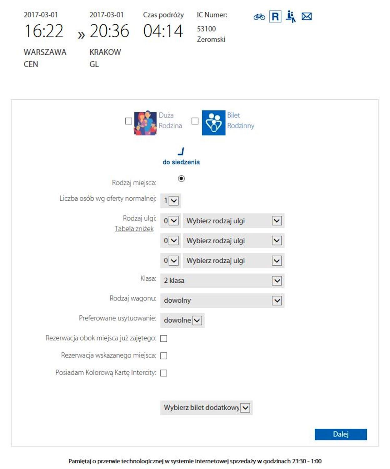 Sprzedaż online z roku na rok cieszy się coraz większym zainteresowaniem. Już blisko 40 proc. pasażerów kupuje bilety korzystając ze strony internetowej intercity.pl oraz aplikacji mobilnej IC Mobile Navigator. Dzięki wprowadzeniu nowego udogodnienia, jest to jeszcze prostsze. W jednej transakcji jest możliwy wybór biletów z różnymi zniżkami (do 3). Dodatkowo podróżny może wybrać „Bilet Rodzinny” czy skorzystać z oferty „Duża Rodzina”.