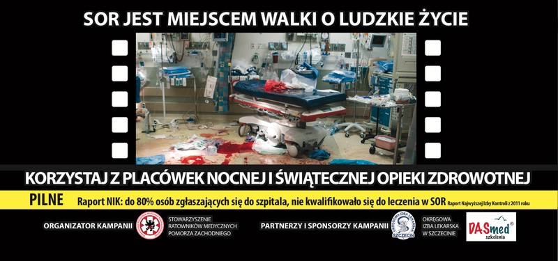 Aby to nam uświadomić, ratownicy medyczni zorganizowali kampanię informacyjną. W Szczecinie pojawiły się niecodzienne billboardy. Widać na nich prawdziwą pracę ratowników medycznych, lekarzy i pielęgniarek pracujących na SOR-ach i w PSRM. Są na nich również informacje dotyczące codziennej pracy przedstawicieli tych zawodów.