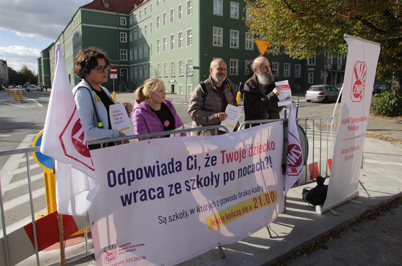 „Chcesz żeby Twoje dziecko było dobrze wykształcone? Jak? Tylko w Szczecinie w tym roku odeszło z pracy 389 nauczycieli!” – to jedno z bijących po oczach haseł, które ma zwracać uwagę na problemy w oświacie.