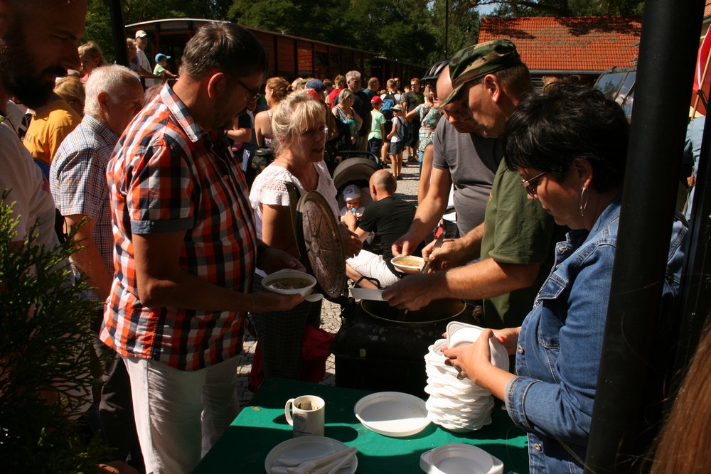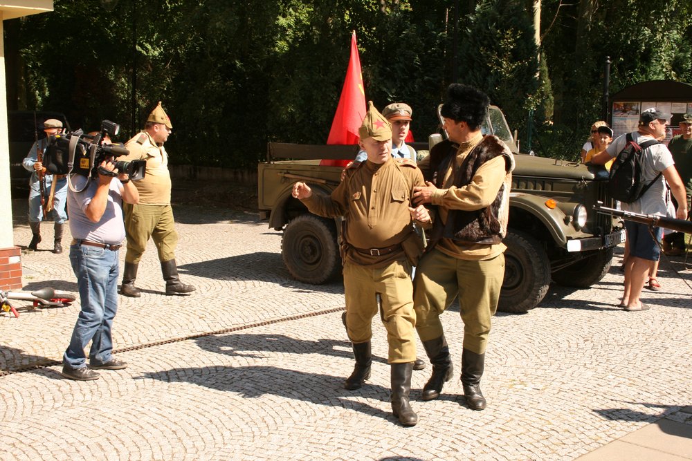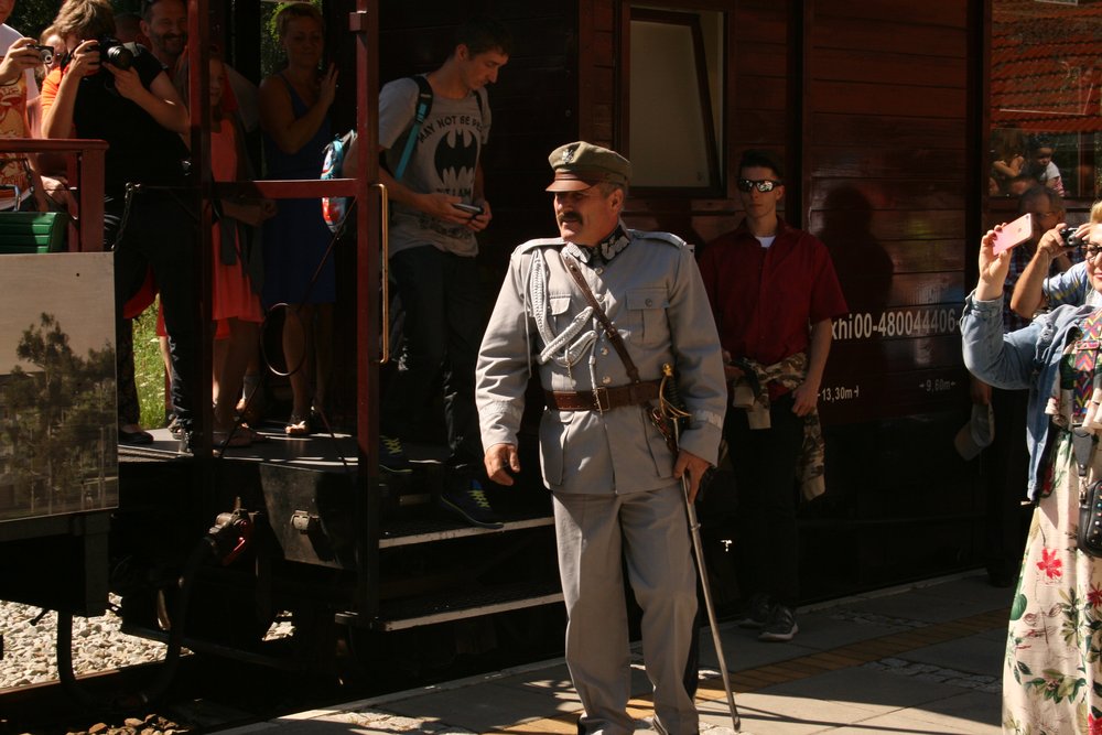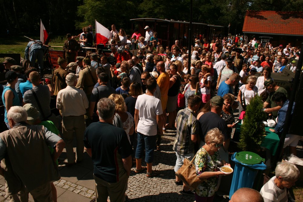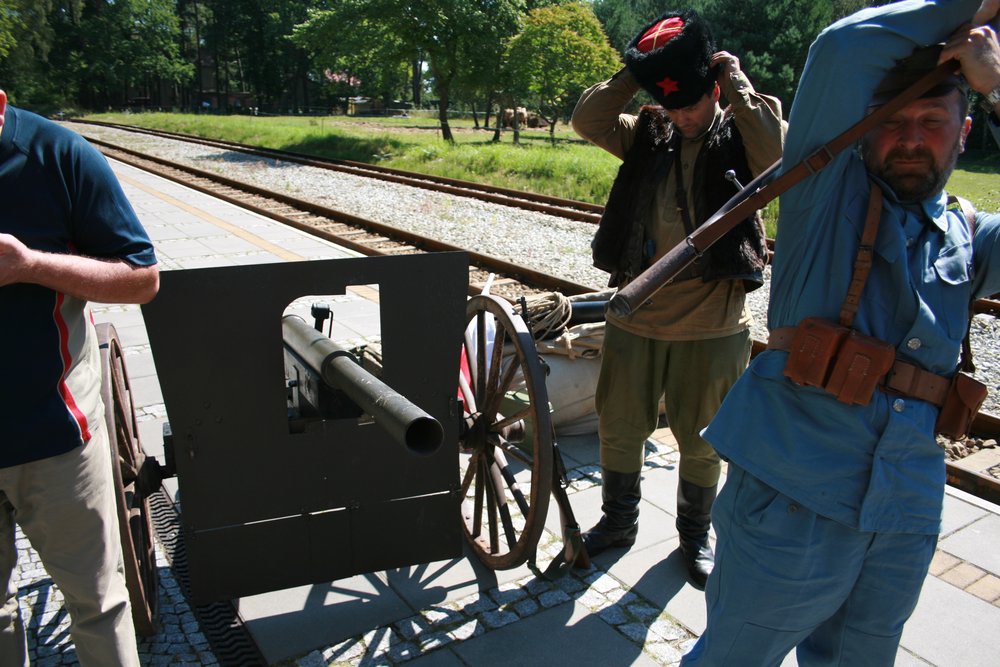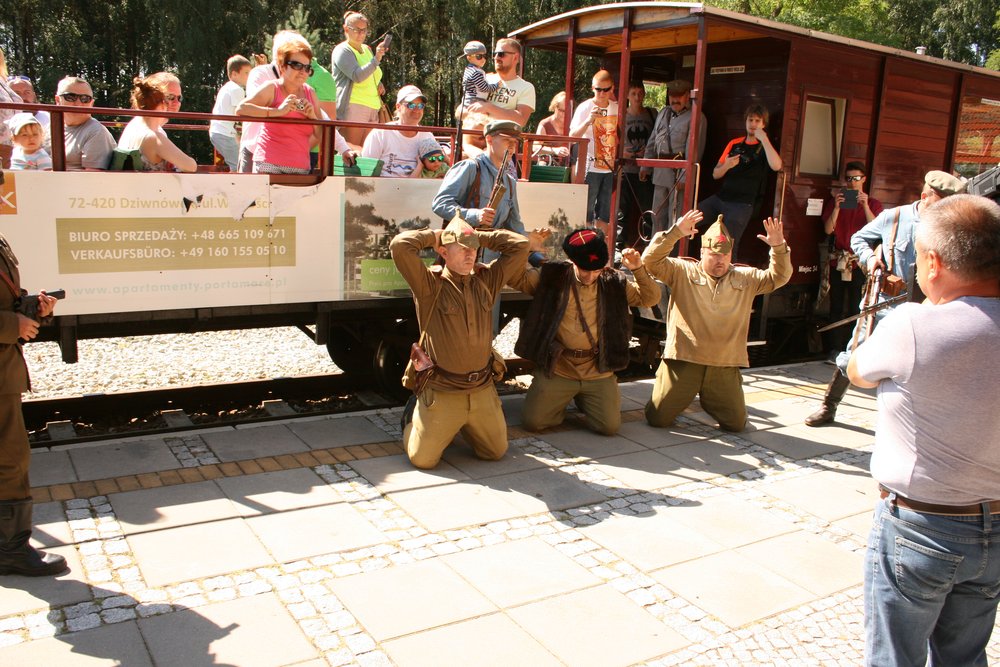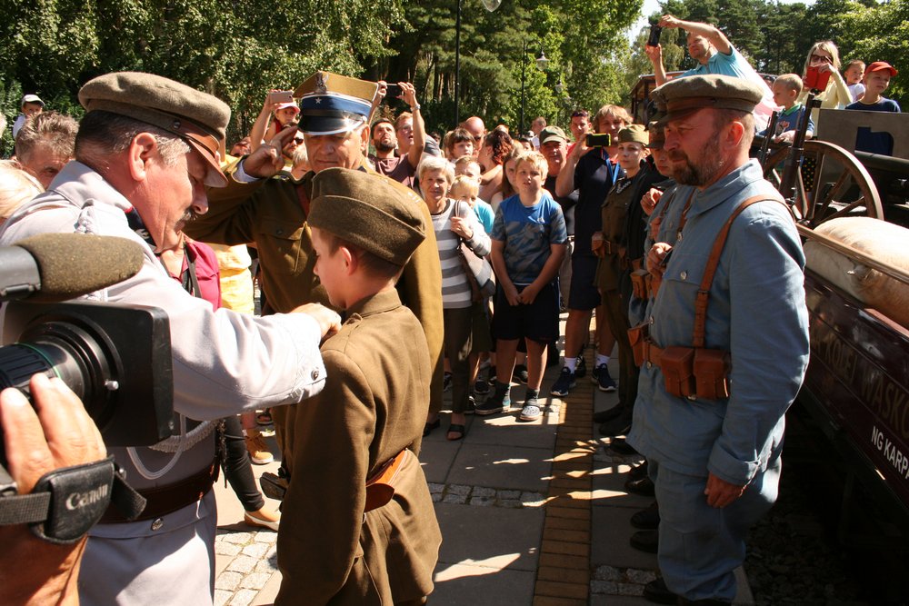Tłumy wczasowiczów zgromadziły się we wtorek na dworcu kolejki wąskotorowej w Pogorzelicy, gdzie odbyła się inscenizacja Bitwy Warszawskiej w wykonaniu grupy rekonstrukcyjnej Nałęcz z Trzebiatowa.