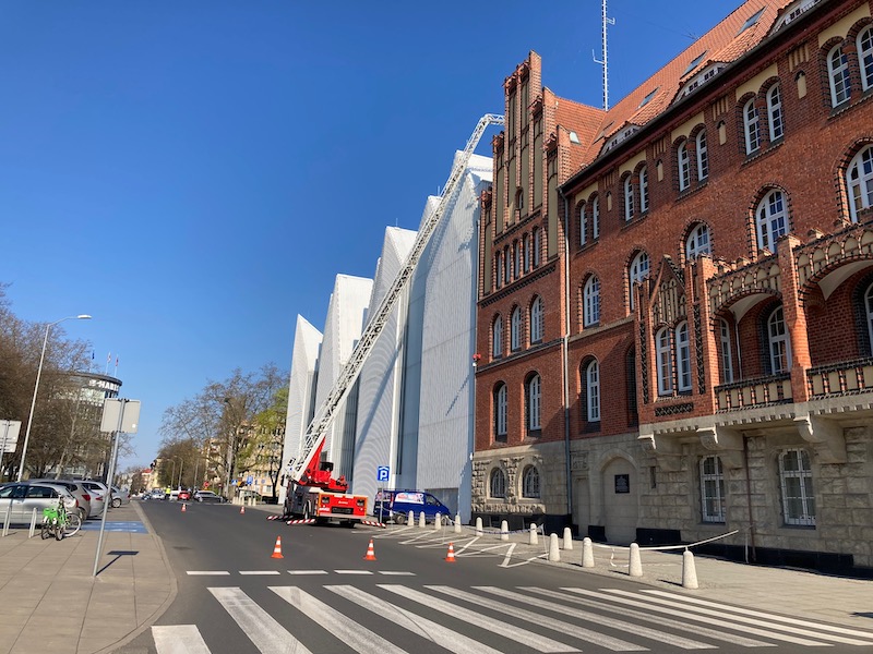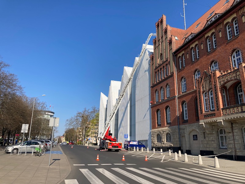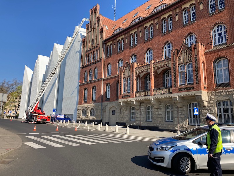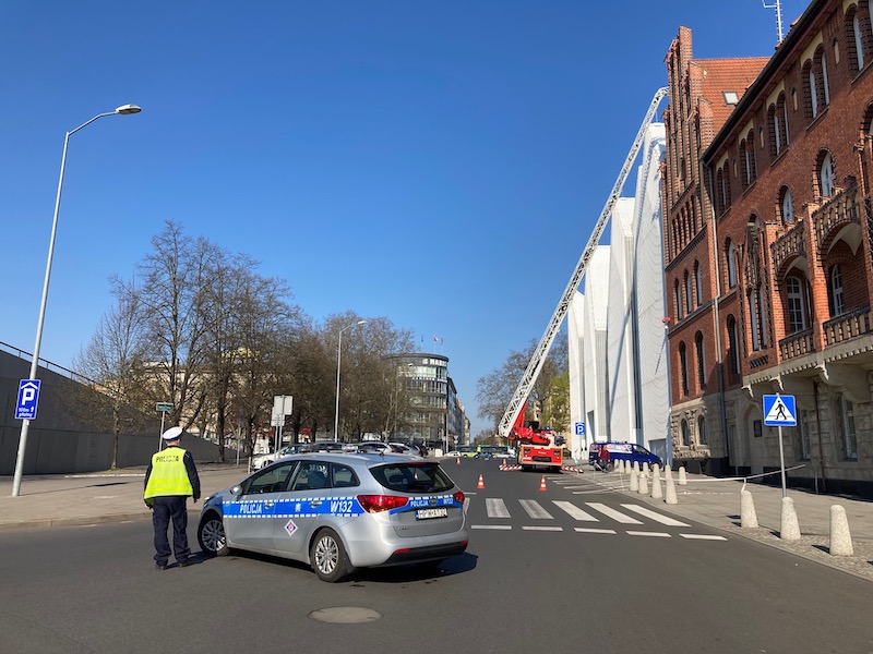 Zamknięta przez kilkadziesiąt minut była ul. Małopolska w Szczecinie w okolicy budynku KWP i Filharmonii. Wszystko przez kawałek blachy zwisający z dachu budynku policyjnej komendy.