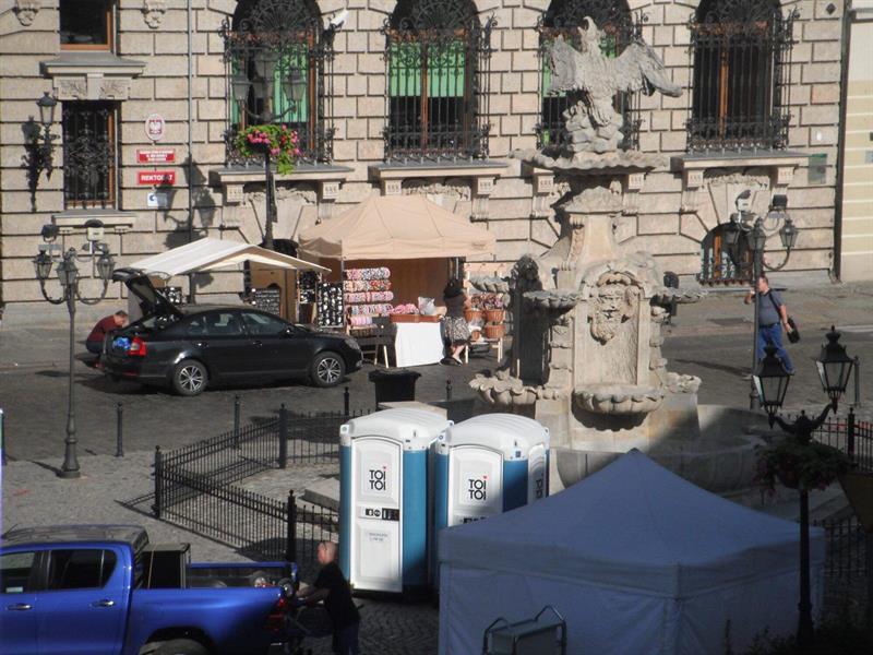 Zatem… jeszcze jest szansa ten jarmarczny, organizacyjny błąd naprawić: przenośne toalety usunąć z centralnego punktu pl. Orła Białego na obrzeża i w cień.