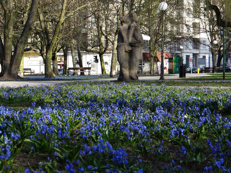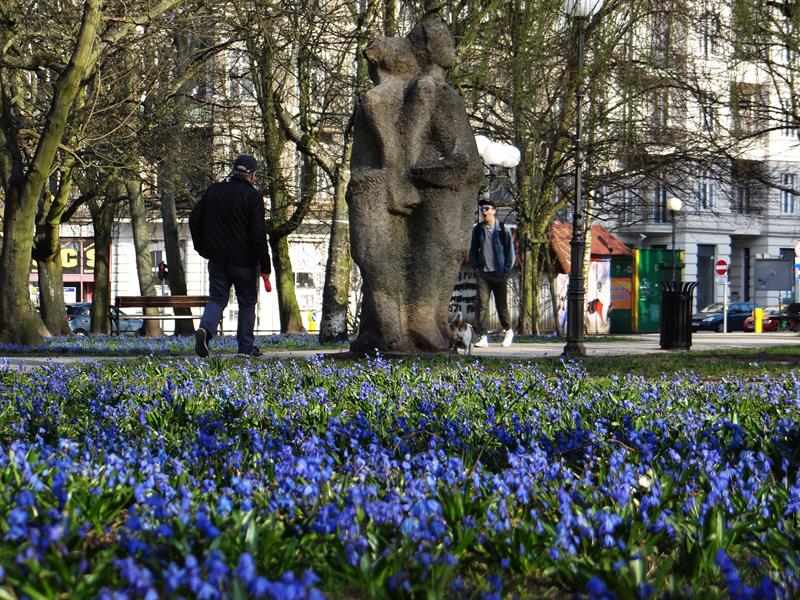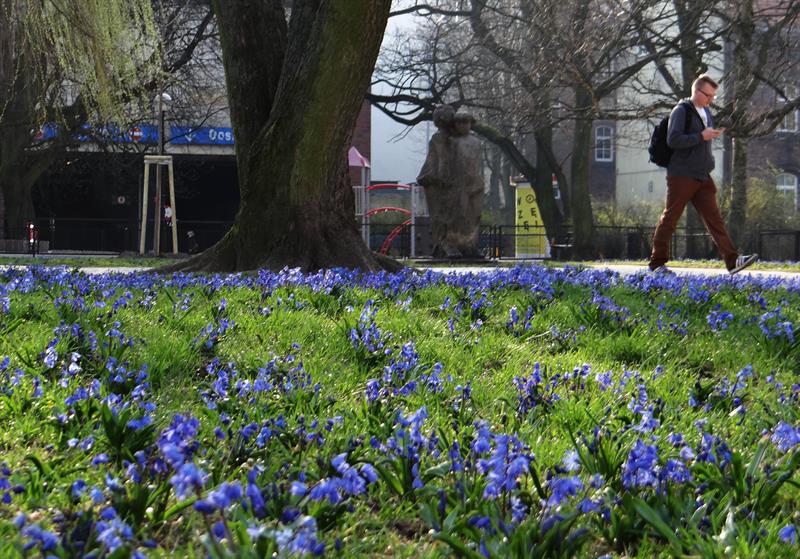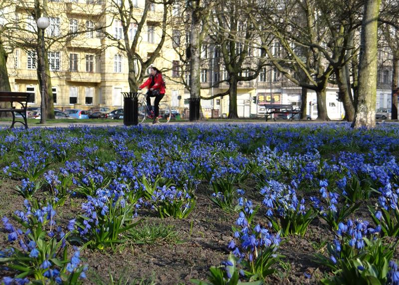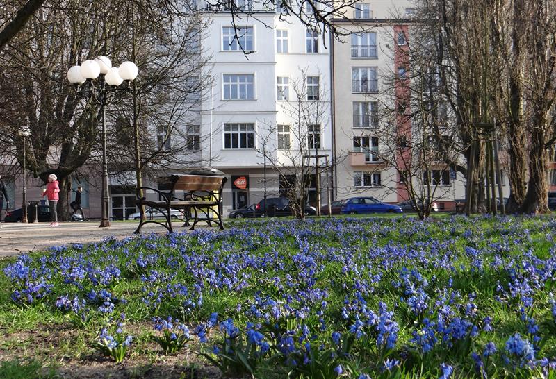 Wiosenne kwiaty o mało romantycznej nazwie - cebulice. Jednak właśnie teraz - po krokusach - tworzą urokliwe błękitne „pierzyny" na wielu szczecińskich zieleńcach.