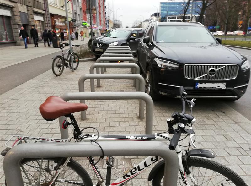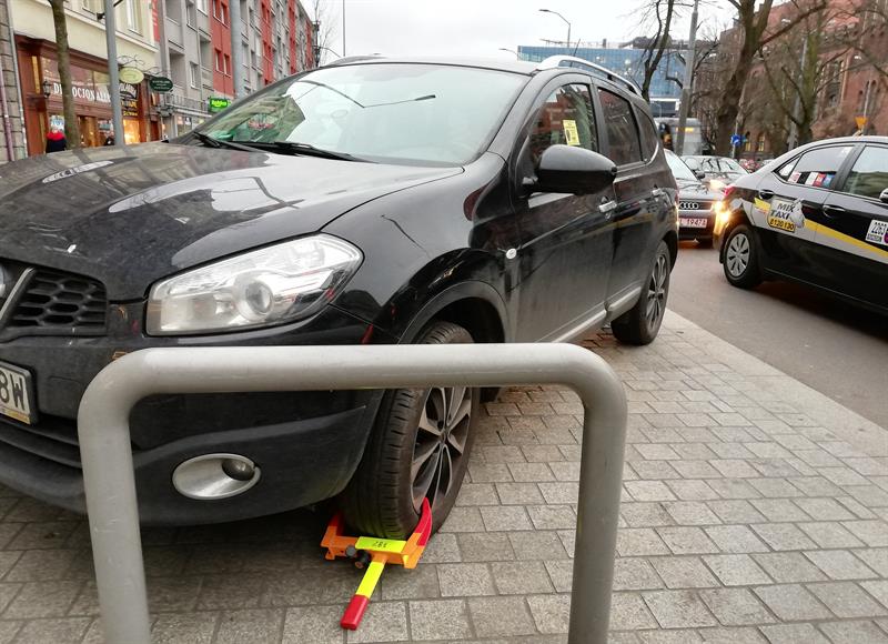 Zaparkował. Blokując nie tylko postój rowerowy, ale również część pasa ruchu w al. Niepodległości, czyli jednej z newralgicznych arterii miasta. Blisko przejścia dla pieszych i ścieżki dla jednośladów. Ograniczając pole widzenia innym uczestnikom ruchu. Nie ma wątpliwości, że w fatalnym stylu zasłużył na blokadę.