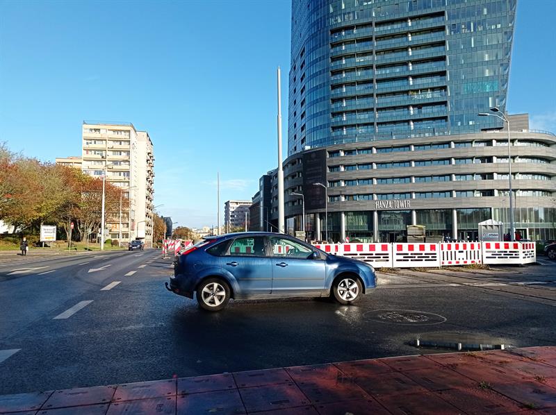 Przypominamy, że obecnie w tej okolicy – poza tą częścią, która dotąd nie została jeszcze wyłączona z ruchu – od dłuższego czasu kierowcy muszą uważać na zwężenia wzdłuż obu nitek jezdni na odcinku samej al. Wyzwolenia, m.in. bliżej wieżowca Hanza Tower i hotelu Dana do okolic skrzyżowania z ul. Odzieżową i zjazdu w kierunku ul. Ofiar Oświęcimia. Tam barierkami obstawione pozostają lewe pasy przyległe do nowego torowiska, gdzie aktualnie trwają prace przy urządzaniu wysp dodatkowych dwóch przystanków. Od nadchodzącej soboty przy pl. Wincentego Witosa w związku z wyłączeniem z użytkowania znajdującego się przejazdu z relacjami do skrętów w lewo zmotoryzowanym pozostanie możliwość jazdy na wprost do lub z centrum.