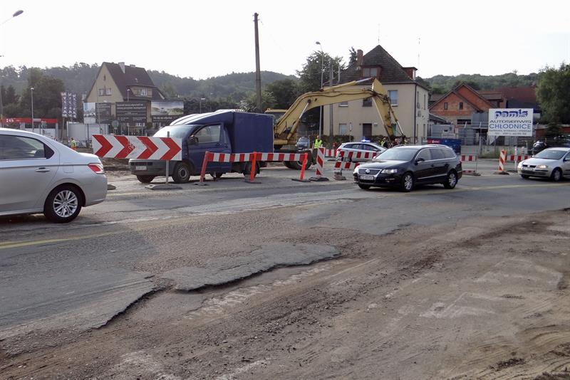Po wcześniejszym otwarciu ponownie dla ruchu samej ul. Floriana Krygiera, gdzie prace przy przebudowie są kontynuowane, drogowcy konsorcjum Rover-Roverpol i ich podwykonawców rozpoczęli je także przy urządzaniu nowego prawoskrętu z ul. Granitowej do nowego ronda powstającego u jej zbiegu z ulicami Floriana Krygiera, Zakręt i Ciasną. Do wysokości zjazdu do Lidla na wysokości stacji Orlenu, znajdującej się po przeciwnej stronie, rozpoczęły się prace rozbiórkowe starej nawierzchni. Dopiero jednak teraz - po skutecznie wprowadzonej blokadzie i ograniczeniu do minimum ruchu - mógł tam wjechać na dobre ciężki sprzęt. Dodatkowe szykany dla kierowców wprowadzone zostały w obecności radiowozów policji. Te wzmocnione blokady po raz kolejny okazały się dla wielu ze zmotoryzowanych zaskoczeniem. Przez pracowników firmy ochroniarskiej byli zawracani głównie ci, którzy nadjeżdżali od strony Zdrojów.