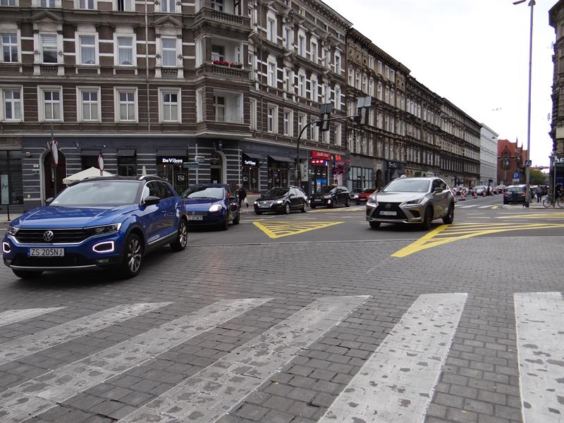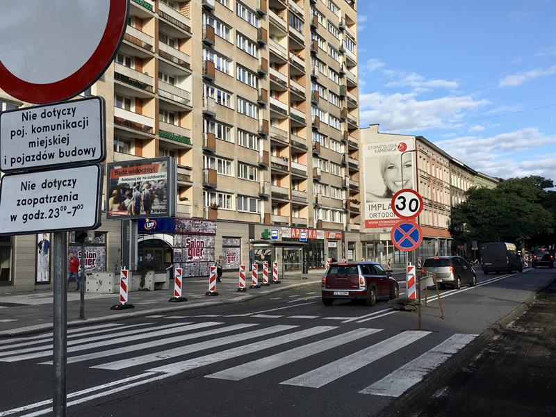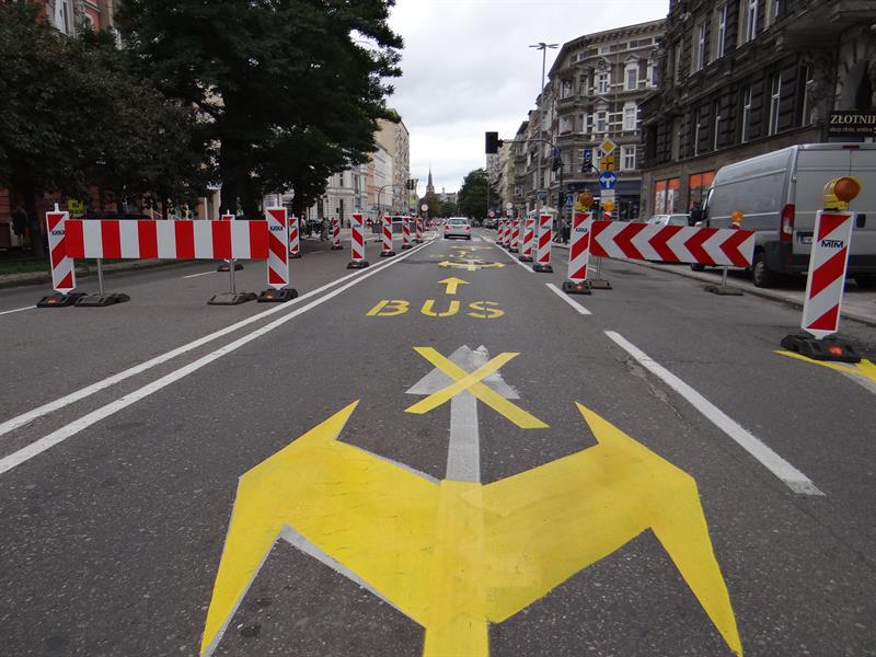 Na odcinku ulicy Jagiellońskiej między al. Piastów i al. Wojska Polskiego wyłączony z ruchu został dotychczasowy pas do jazdy na wprost. Wygrodzony został słupkami i barierkami. Z prawego pasa można jechać na wprost dalej ul. Jagiellońską lub skręcić w lewo w al. Wojska Polskiego w stronę pl. Szarych Szeregów. Przed skrzyżowaniem z ul. Jagiellońską zjeżdżający w al. Wojska Polskiego od strony pl. Szarych Szeregów też muszą uważać na przeszkody w postaci zawężenia przejazdu do jednego pasa. Ten prawy jest wyłączony z ruchu. Ze środkowego pasa możliwy jest skręt w ul. Jagiellońską w prawo lub w lewo.