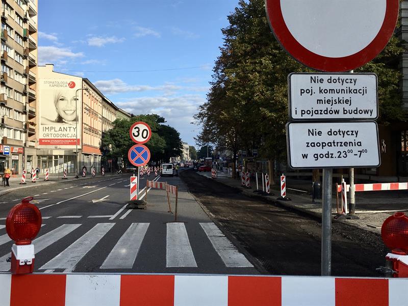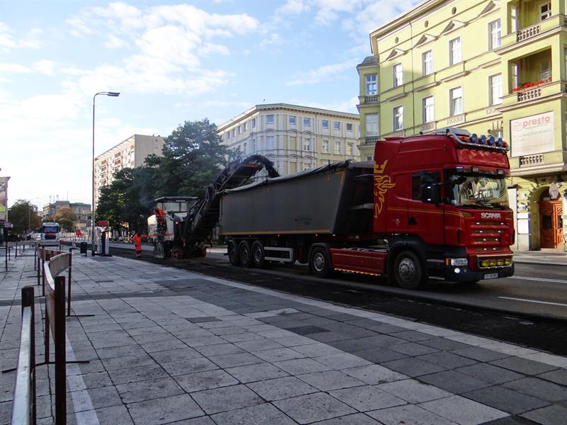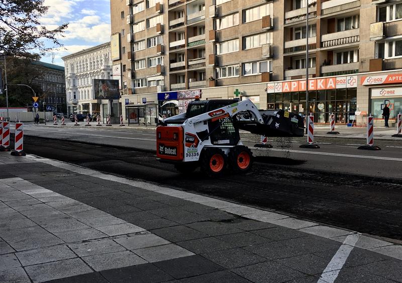Zgodnie z zapowiedziami, od poniedziałkowego ranka (20 bm.) na zamkniętym dla ruchu kołowego fragmencie szczecińskiej al. Wojska Polskiego między pl. Zgody i ul. Jagiellońską ruszyły prace z użyciem ciężkiego sprzętu przy zrywaniu asfaltu z jezdni. Na początek ze skrajnego pasa w kierunku pl. Szarych Szeregów.